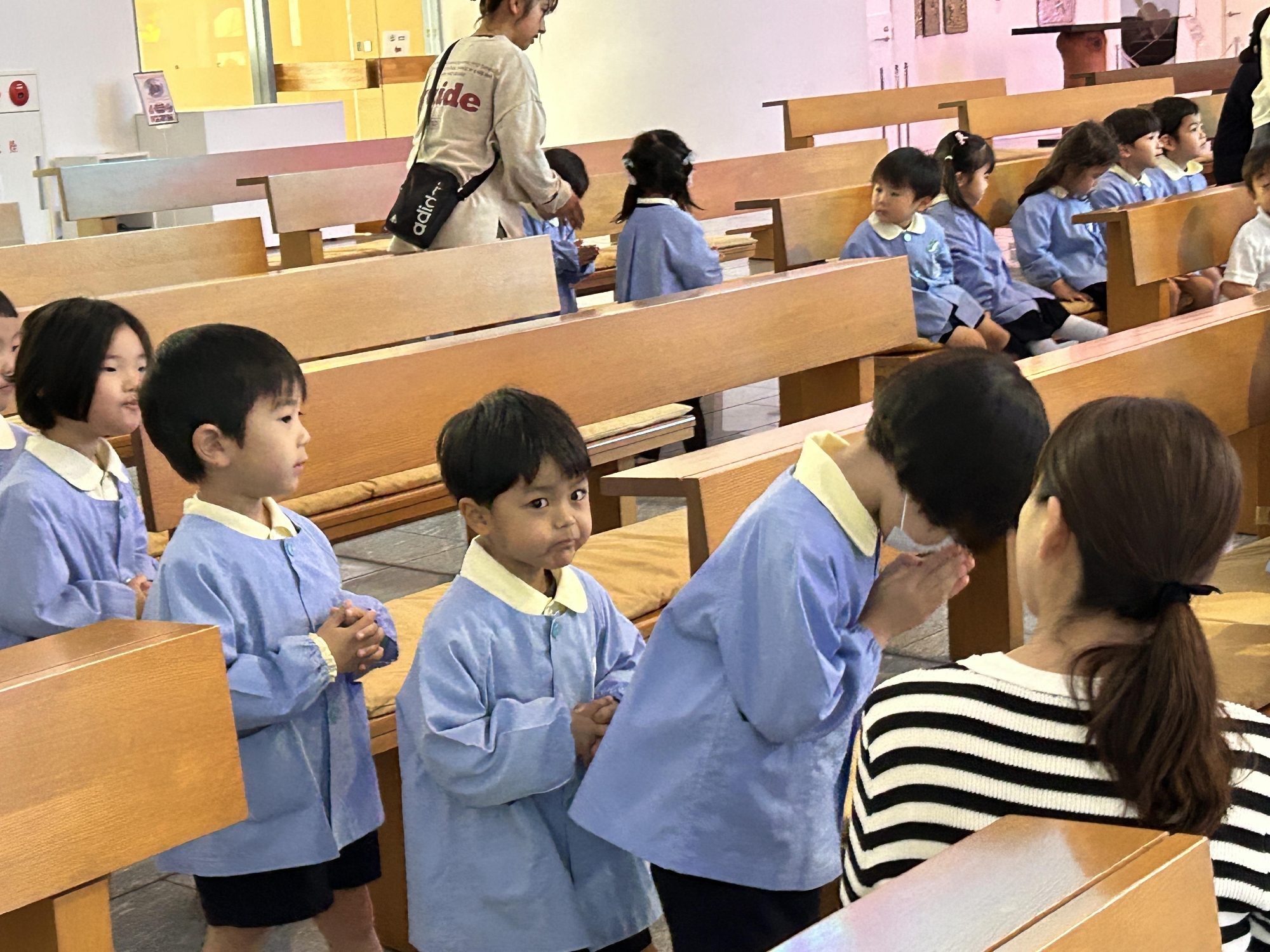 「小さなお友だちもいるから、ゆっくりお祈りしようね」と伝えると、「父と子と…」とゆっくり言ってくれる子ども達もたくさんいました。