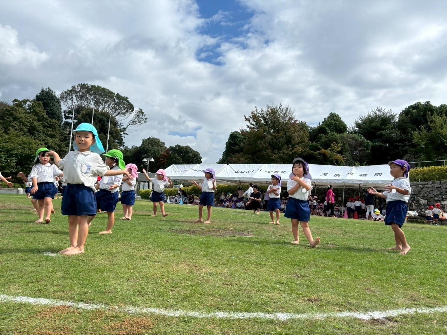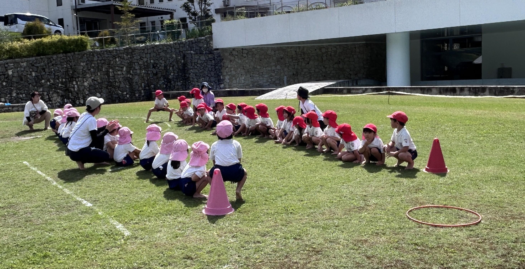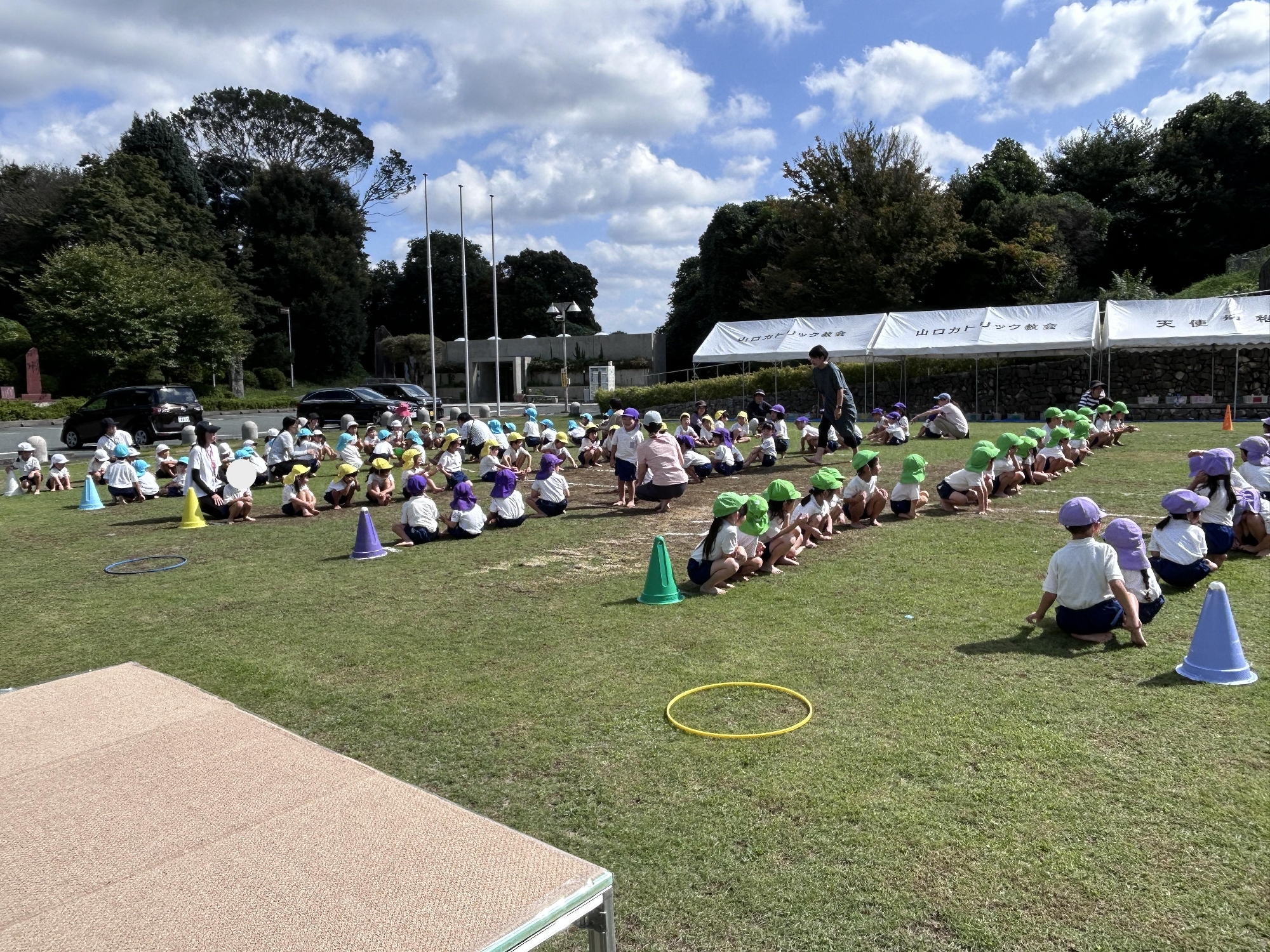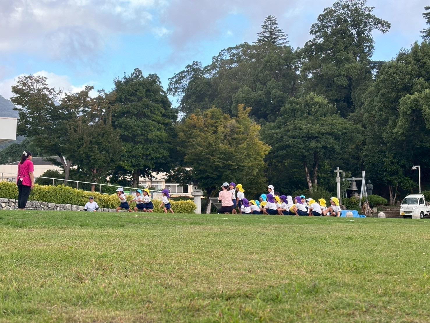 子ども達は、芝生でお客さん(友達や先生達)に見てもらって嬉しそうでした。