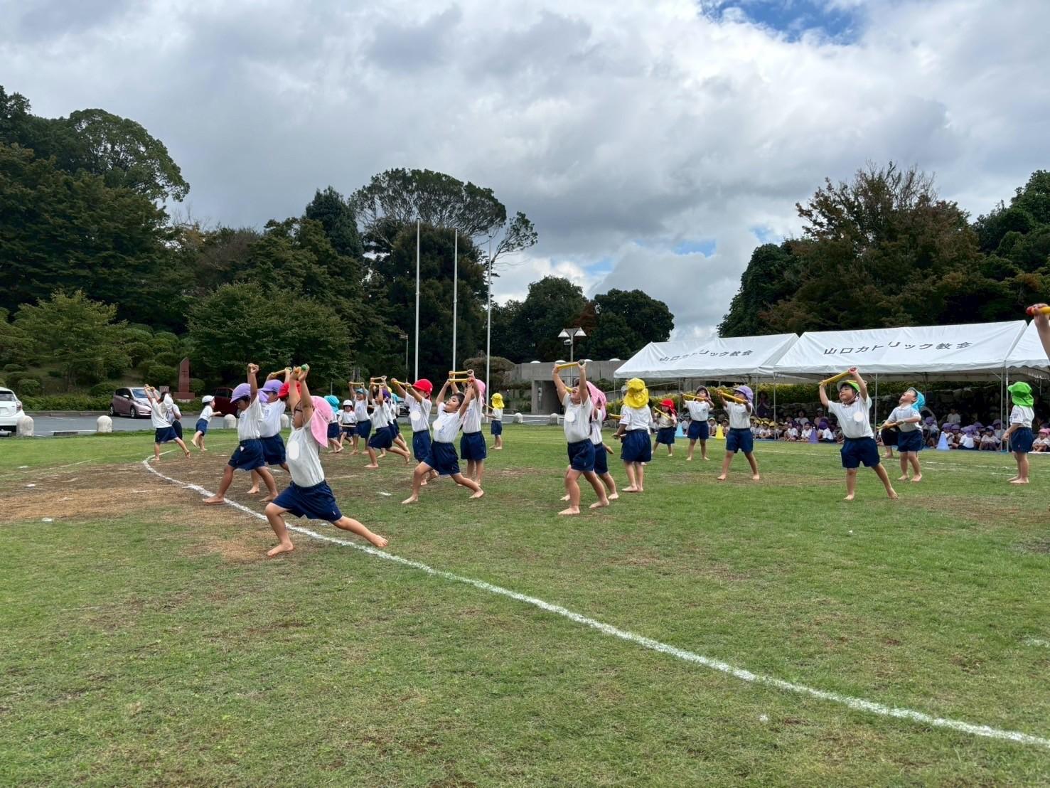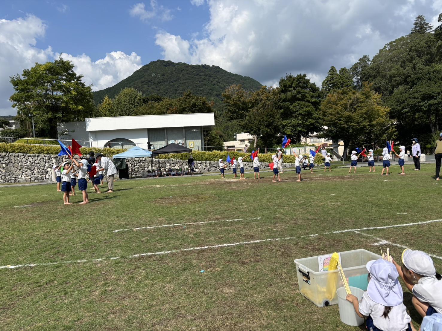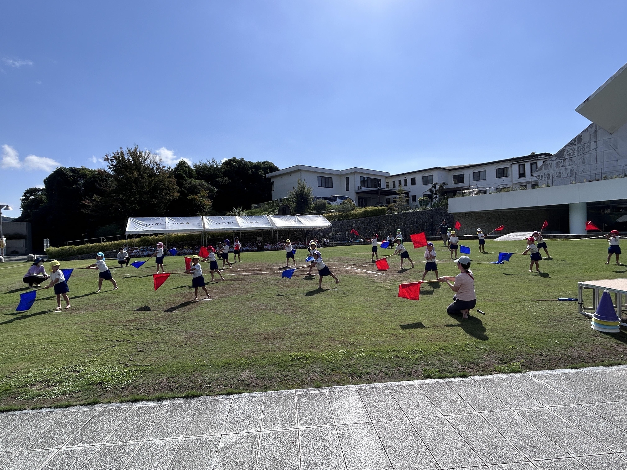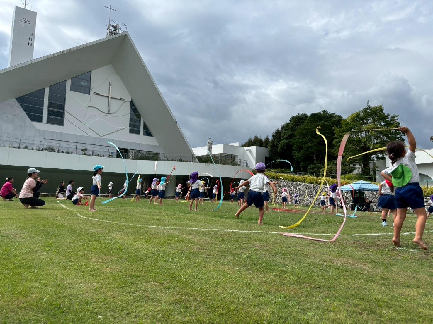 子ども達は、芝生でお客さん(友達や先生達)に見てもらって嬉しそうでした。
