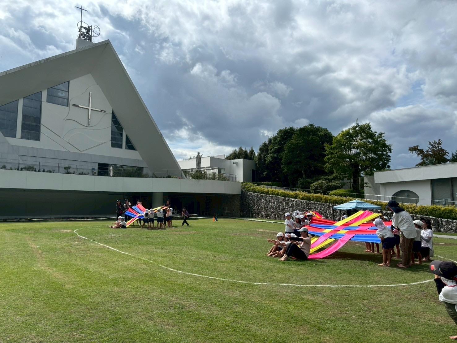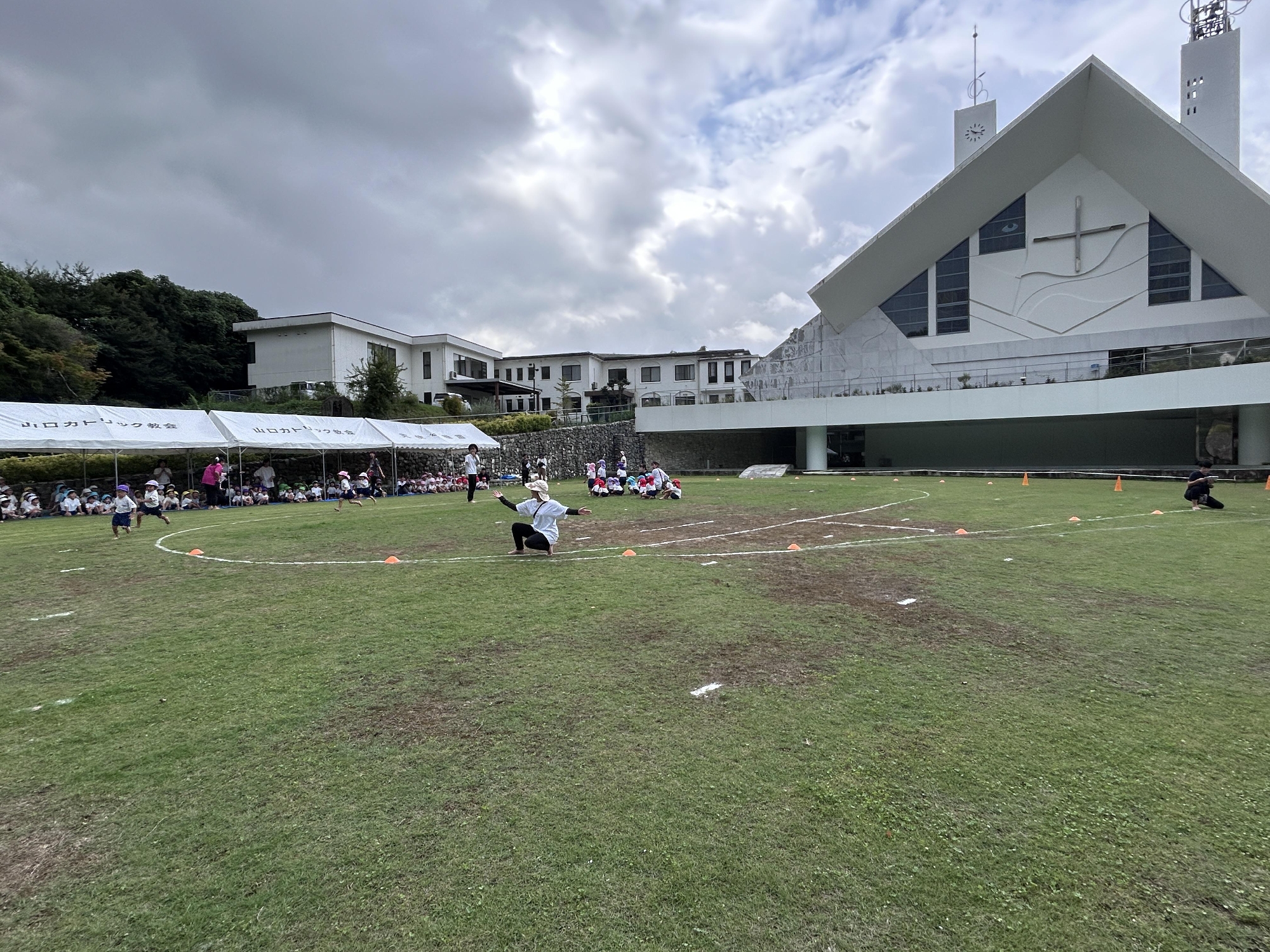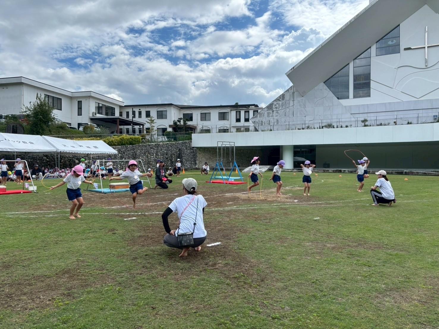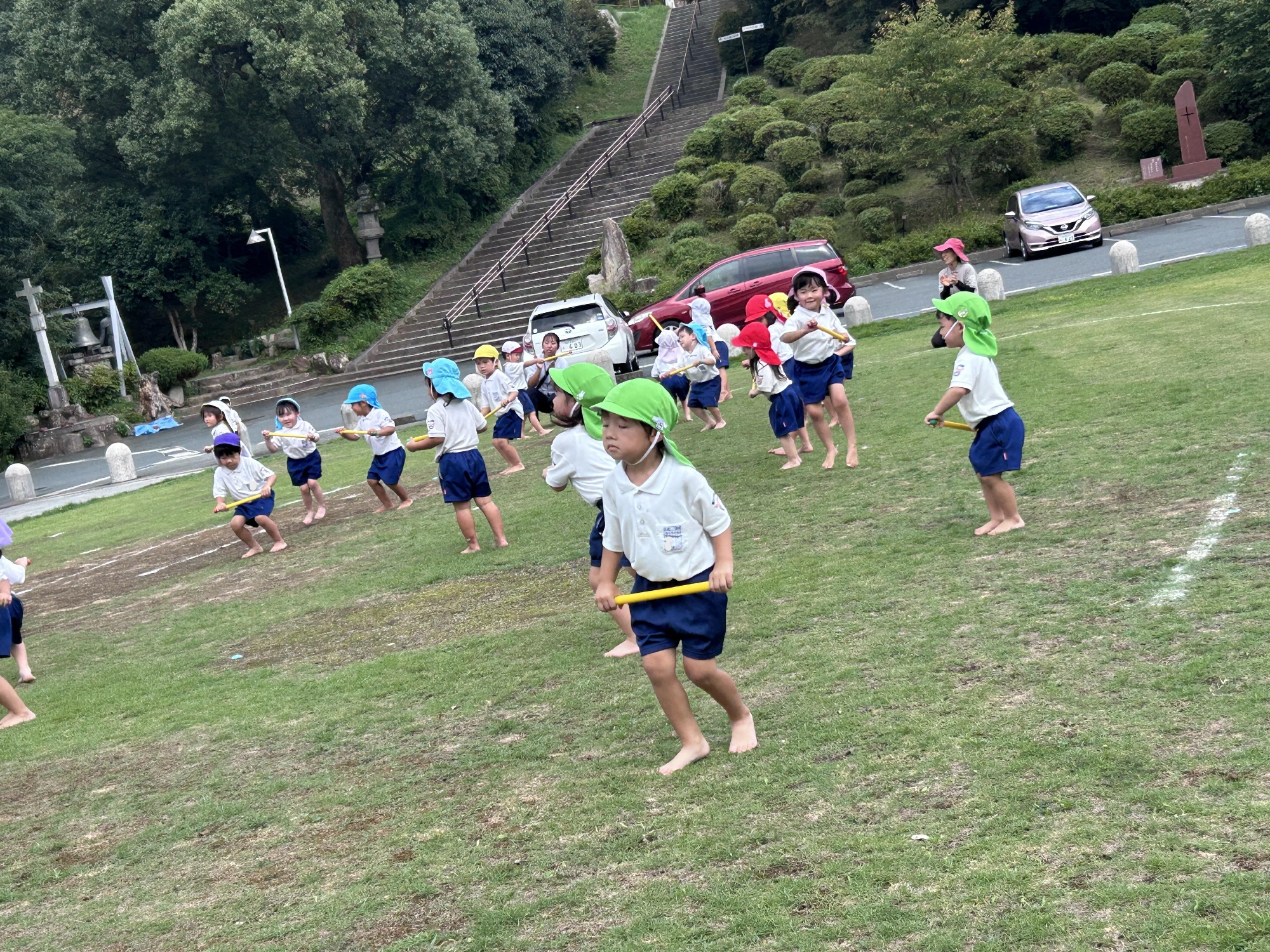 子ども達は、芝生でお客さん(友達や先生達)に見てもらって嬉しそうでした。