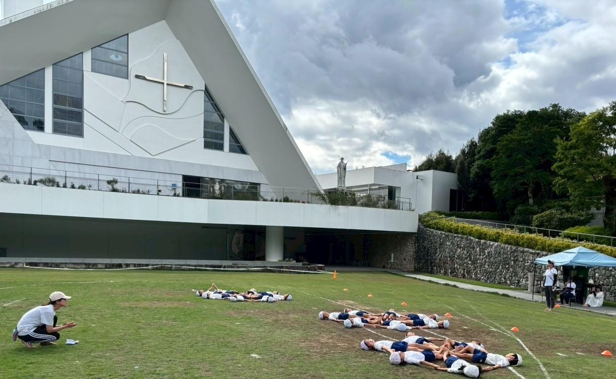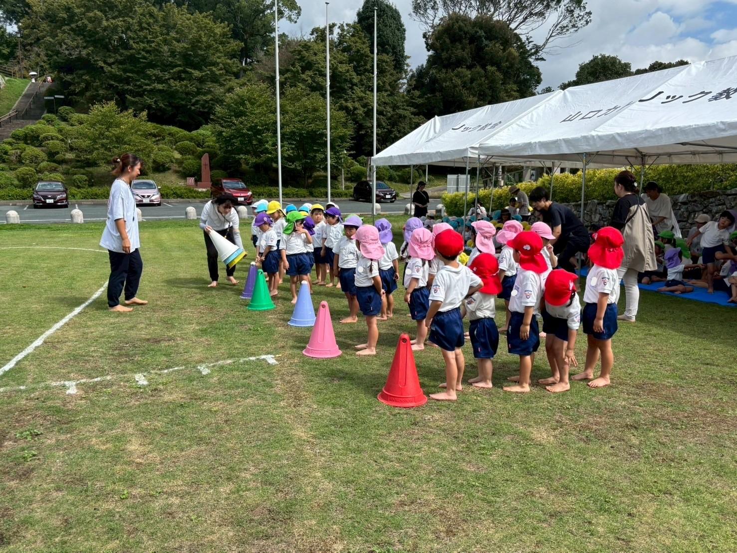 元気いっぱいの掛け声が、芝生広場に響きました。