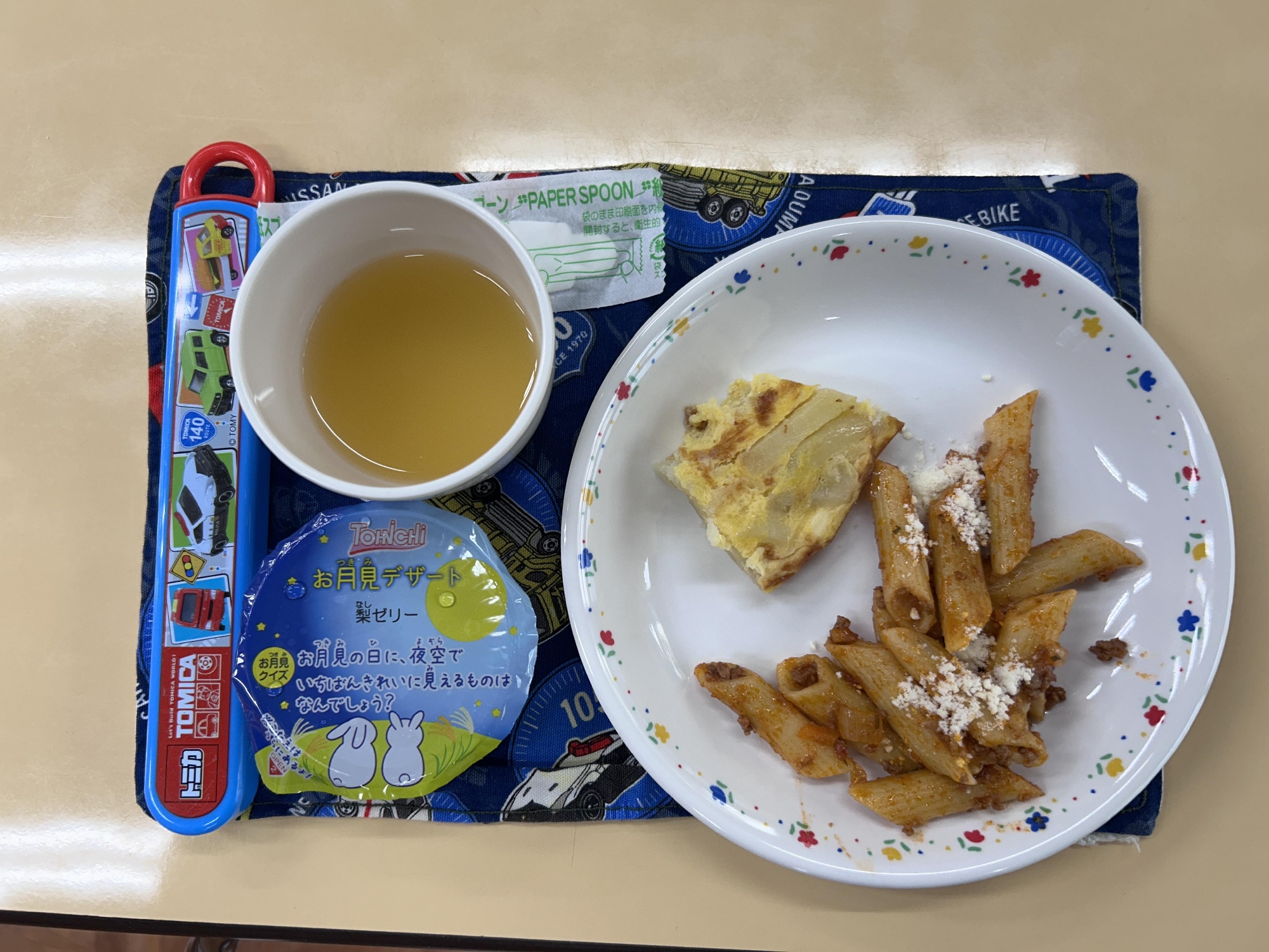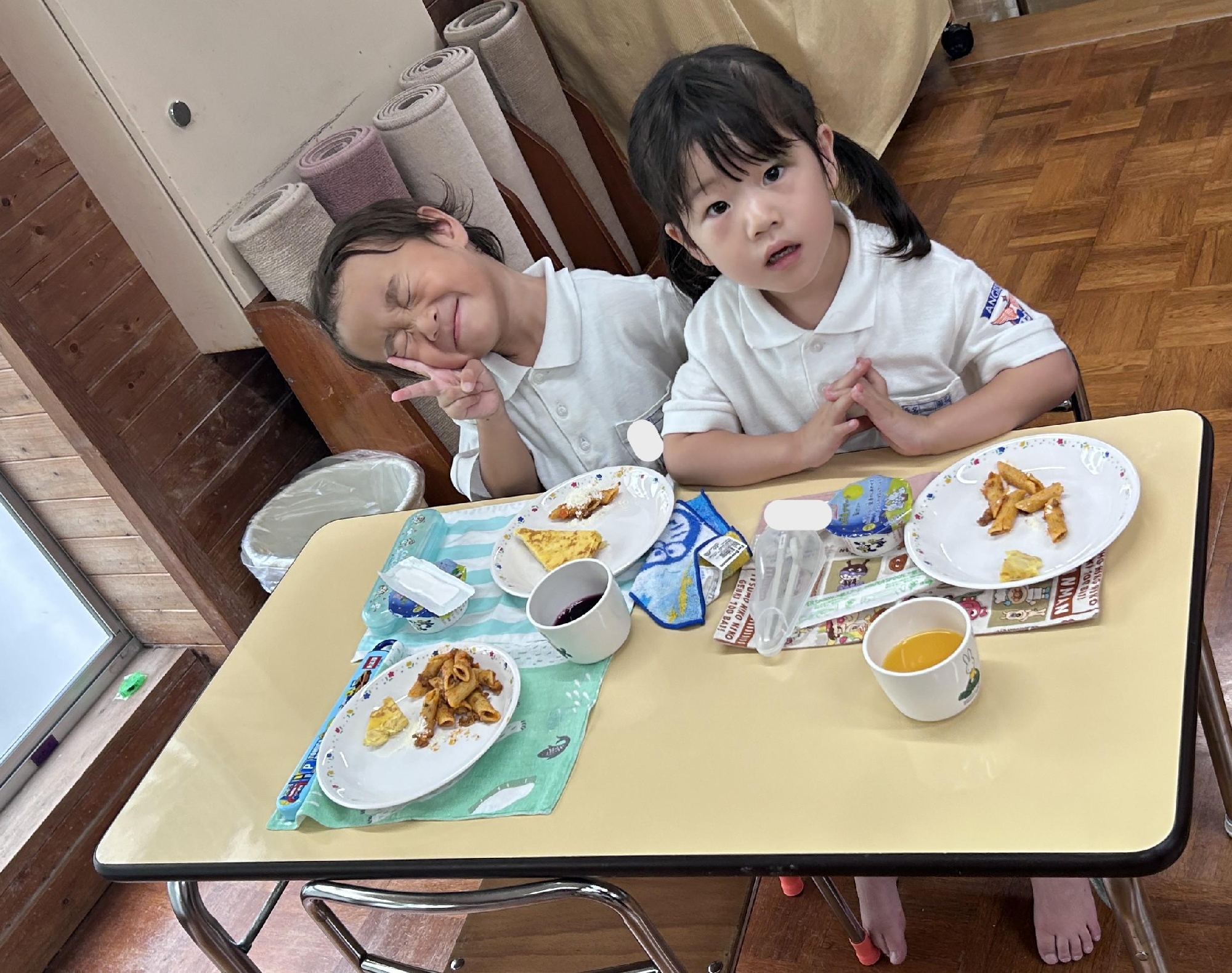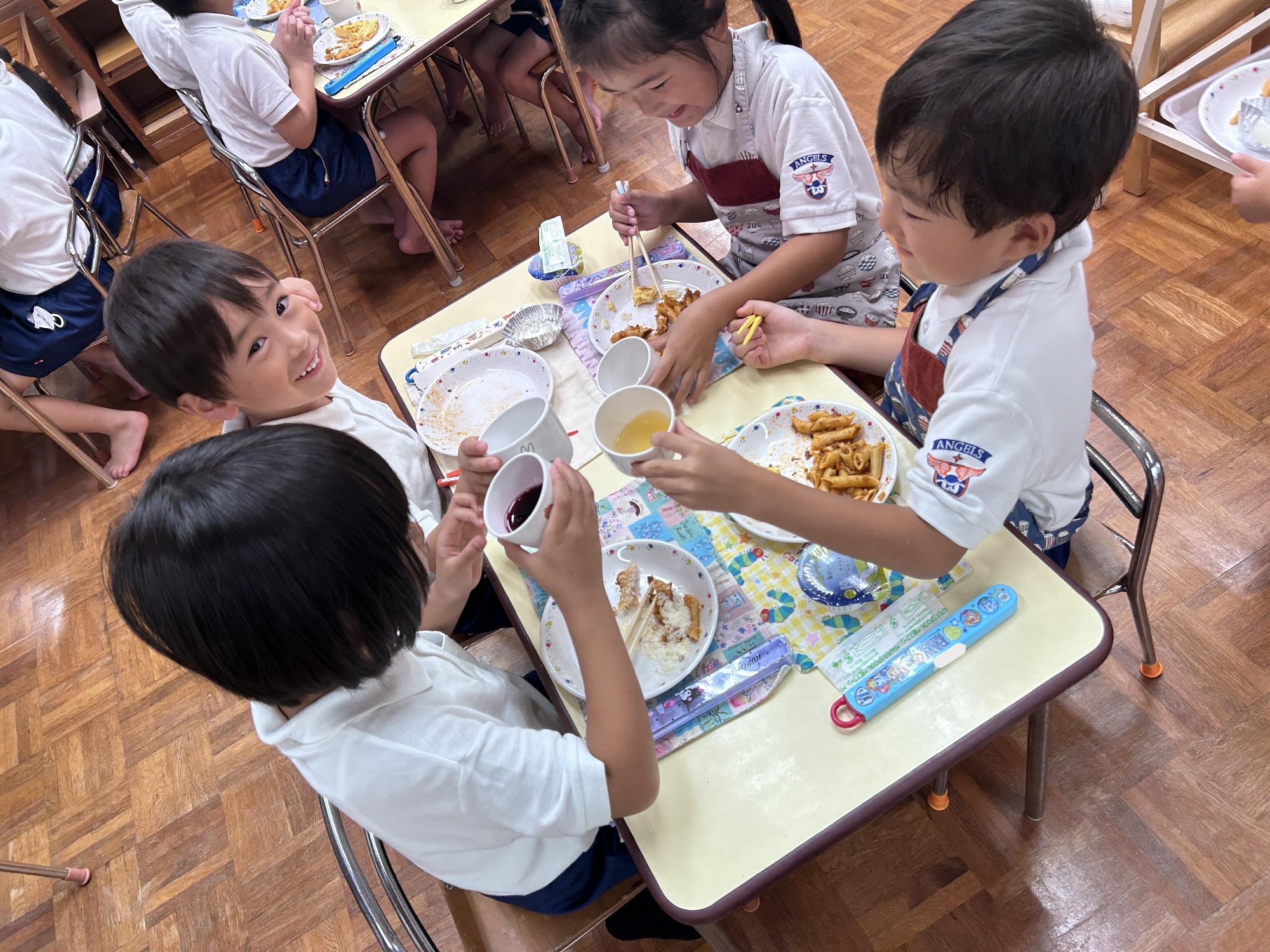 お祝い給食を食べながら、ジュースで乾杯!しました。