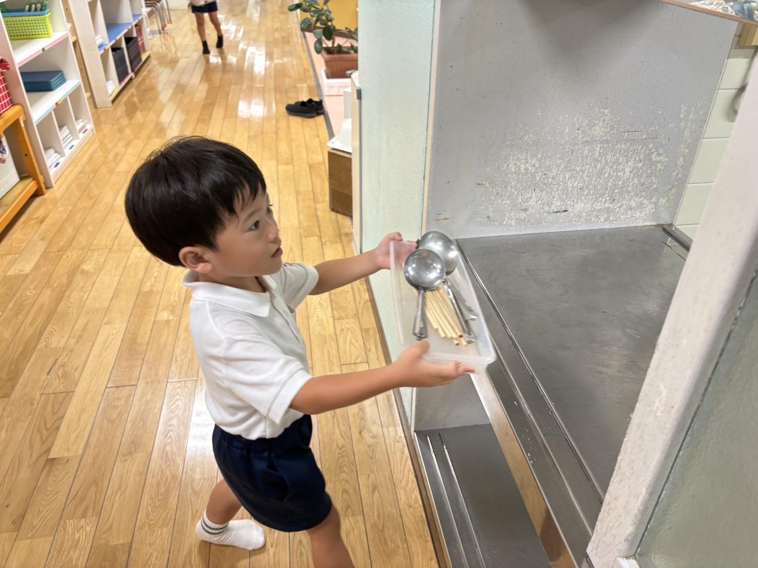 給食室に返すお手伝いをしてくれました。