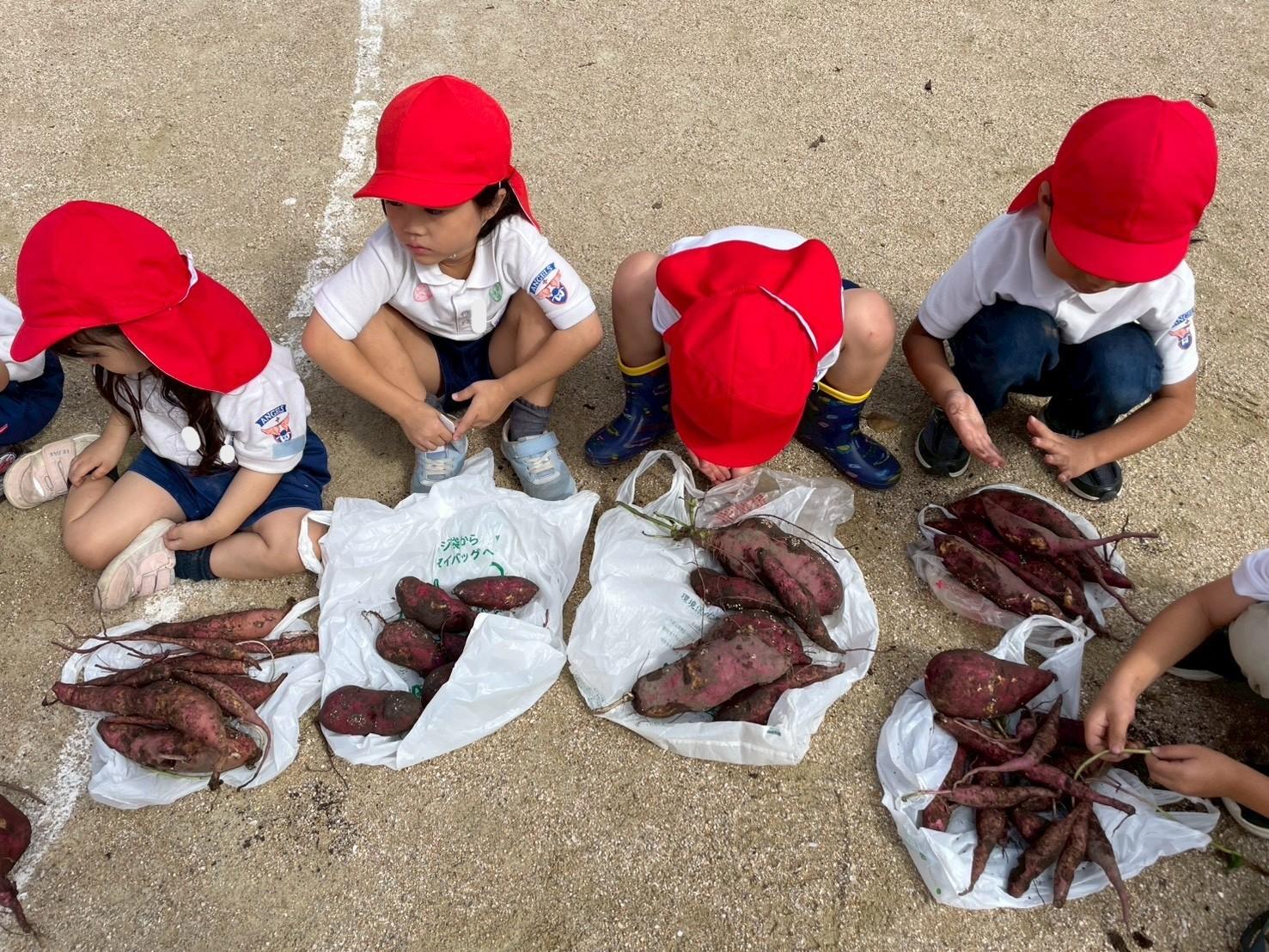 水曜日のお弁当の中に、「今日の大学芋、幼稚園で掘ったお芋!!」「芋の天ぷら入っているよ!!」など、教えてくれる子ども達もいました。