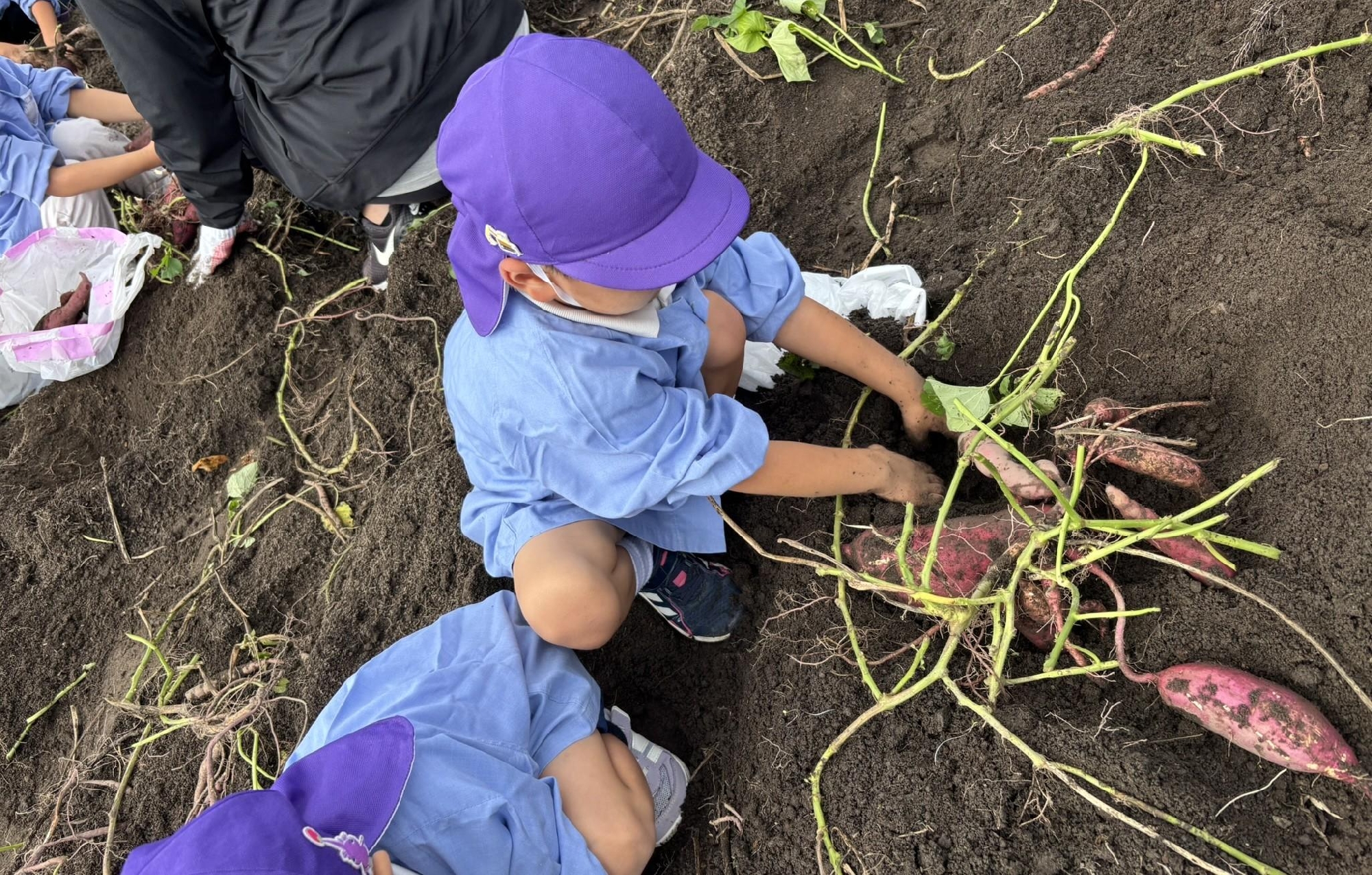 少しですが、お芋掘りの様子をお知らせします。