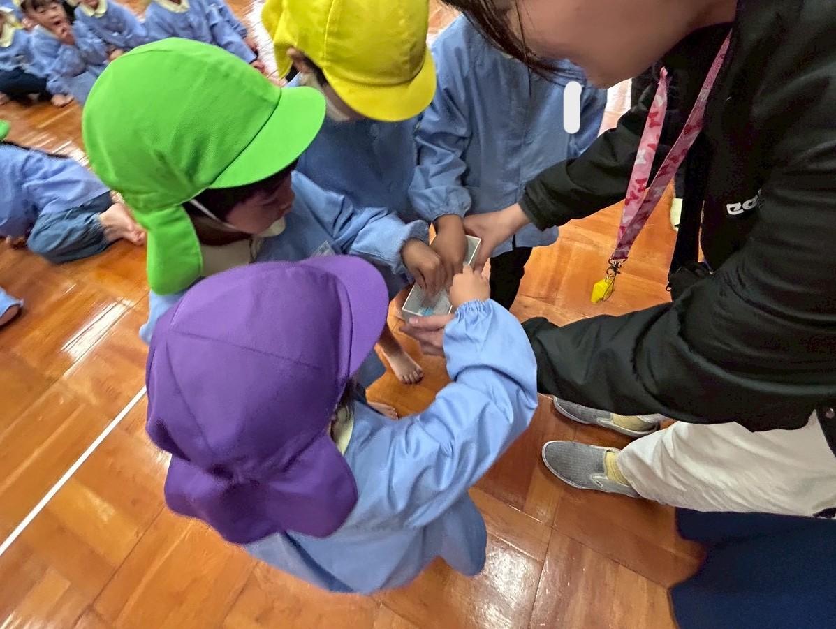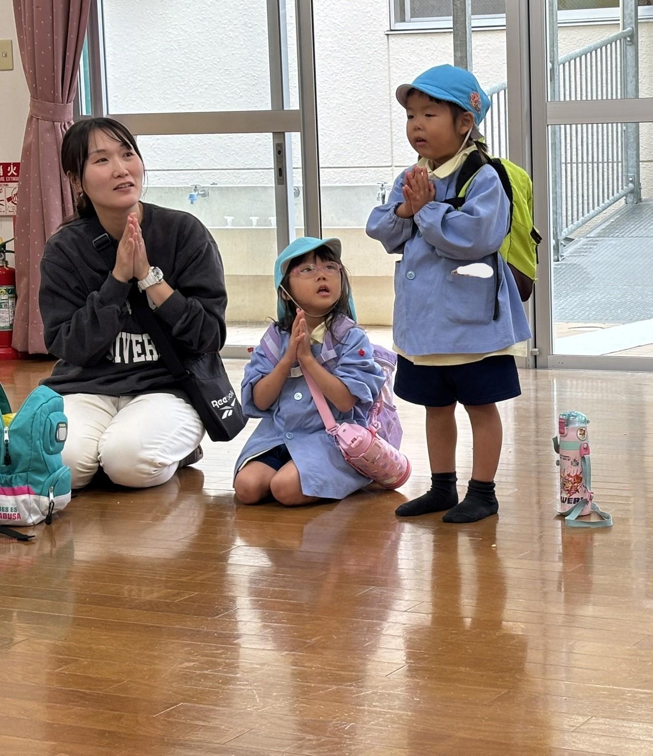 食前、食後のお祈りの時に「お外に遠足は行けなかったけど、幼稚園での遠足楽しかったです」や、「今日は、雨が降ったけど、”わくわく えんじぇる えんそく”が出来て嬉しかったです」と言ってくれる子ども達がいました。子ども達の前向きな心に感動しました。