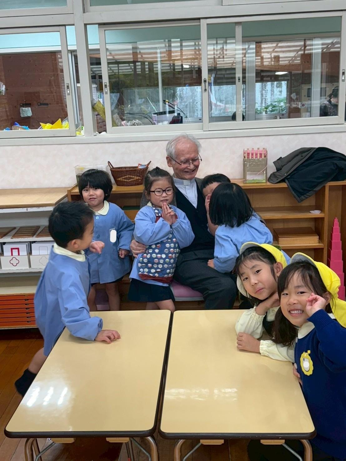 これまで、子ども達、職員、そして保護者の方に神様のお話をしてくださったり、時にはマジックをしてくださるとっても優しい神父様。アフリカやカンボジアの子ども達のためにもたくさん力を使ってこられた方です。いつも、「先生、僕も幼稚園の園児にしてくれる?」と笑顔で聞いてくださる神父様。