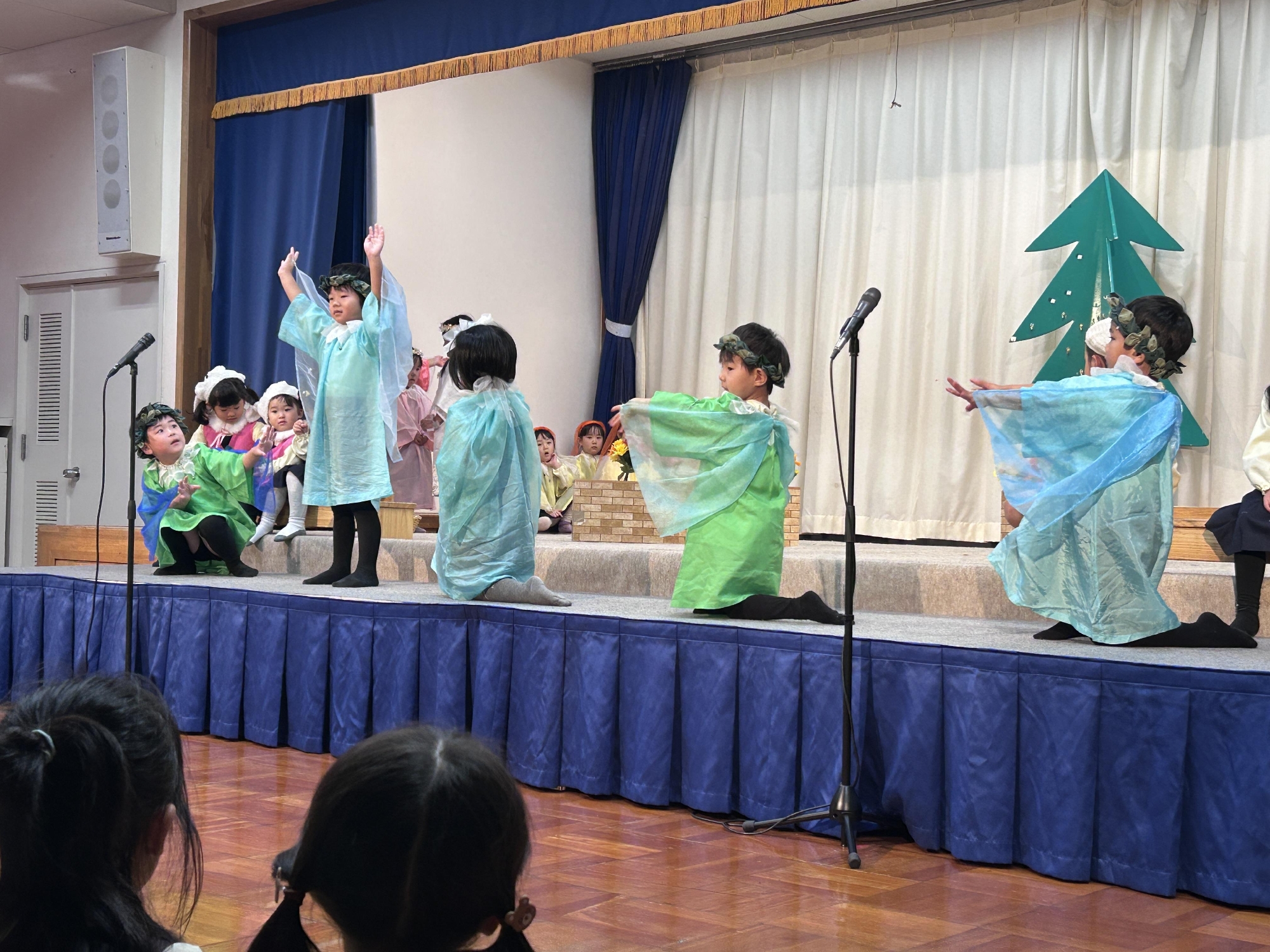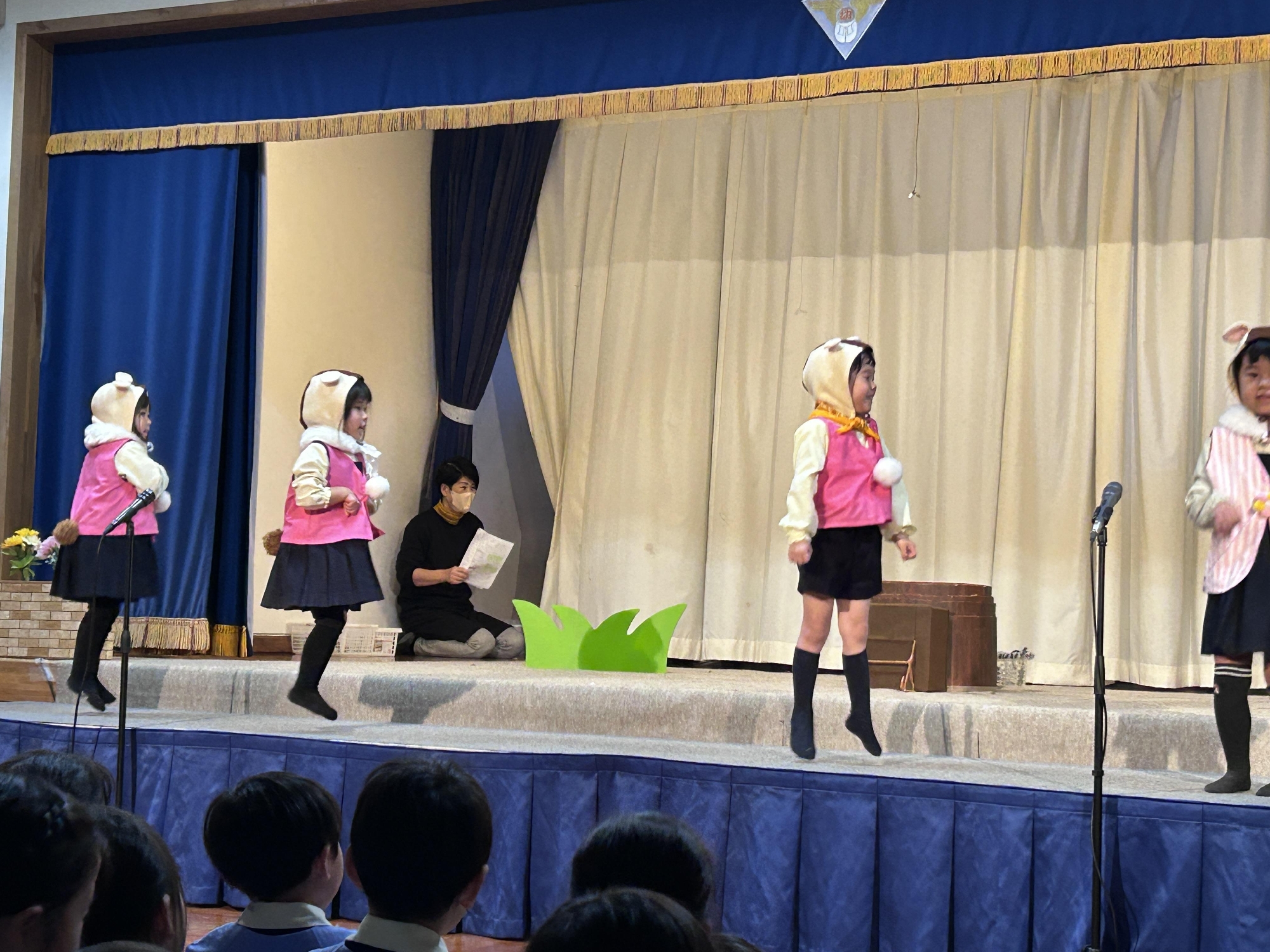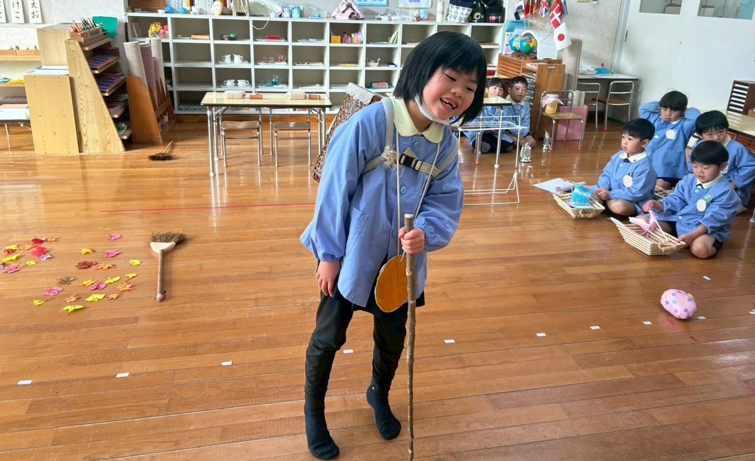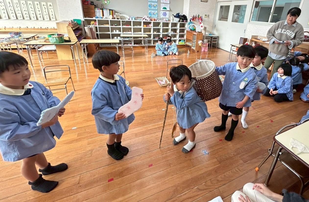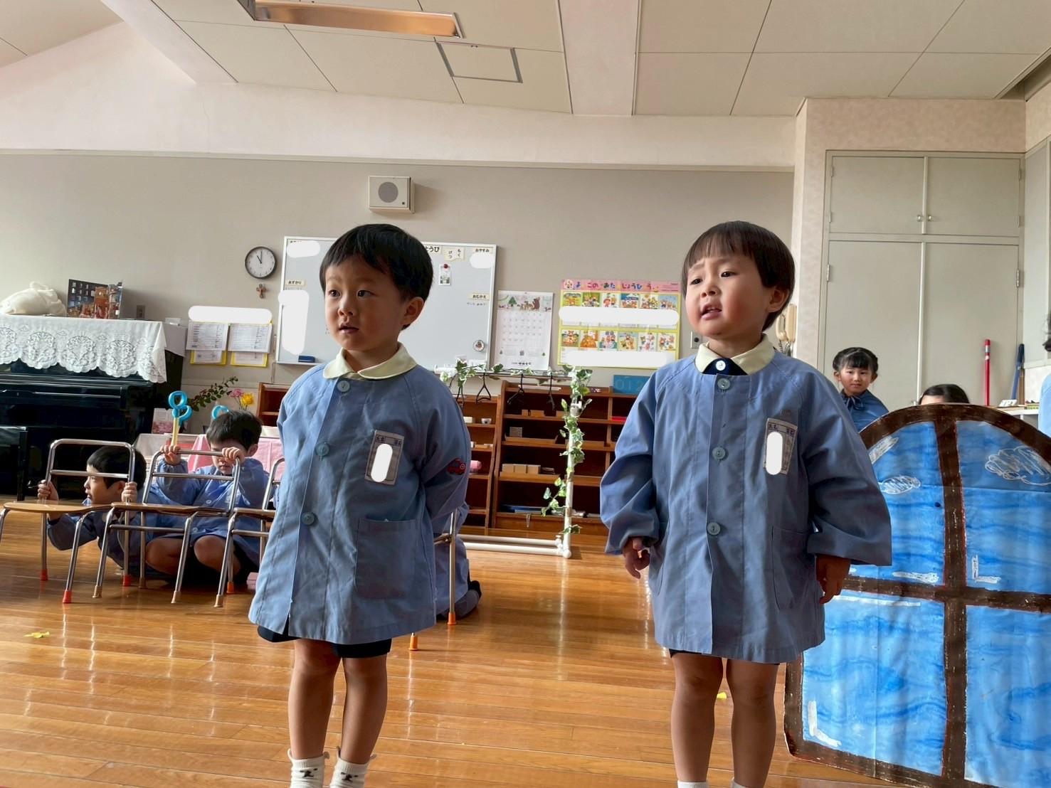 お祝い会をお休みした子ども達もいたので、ホールで劇ごっこをしました。