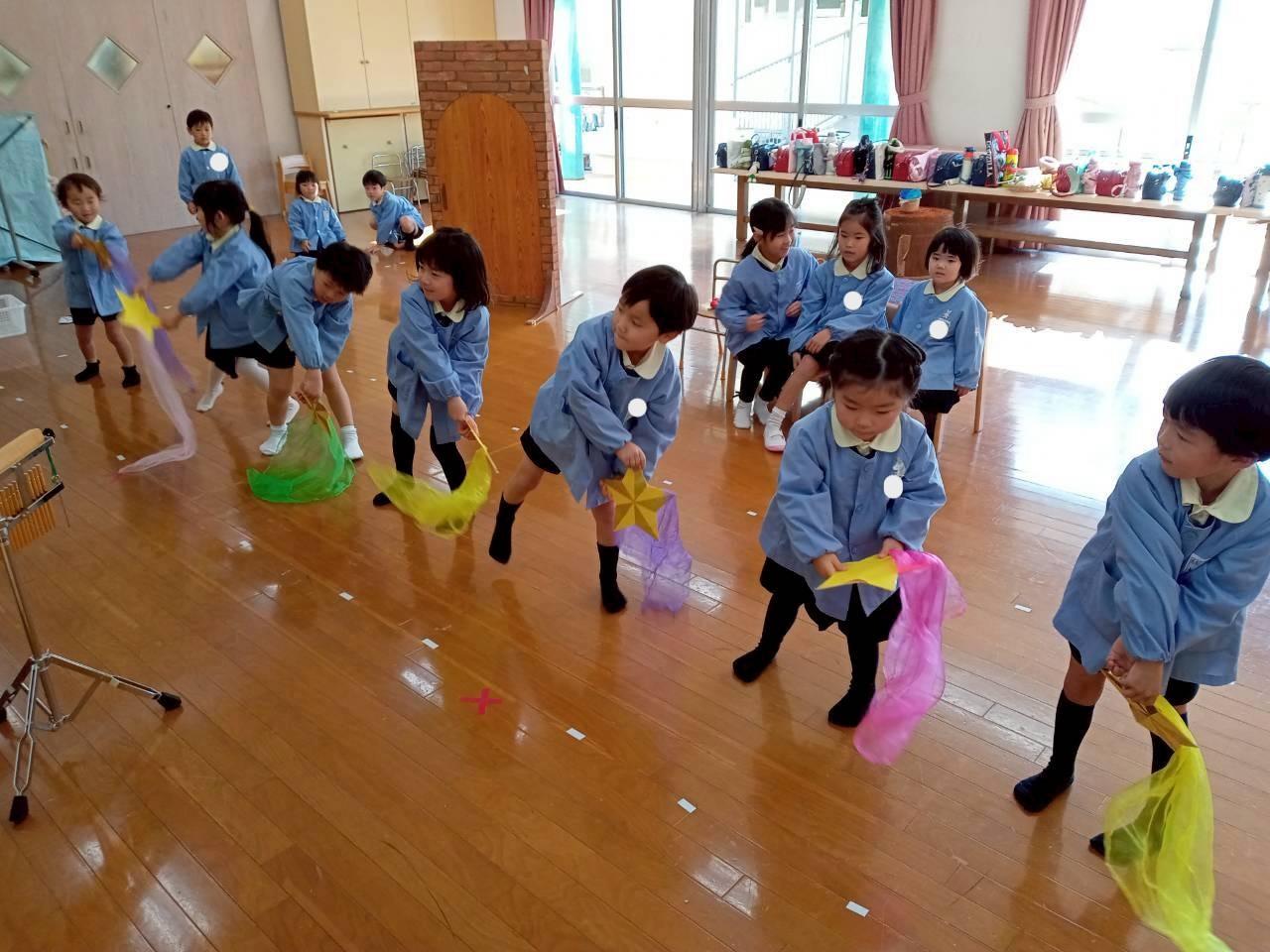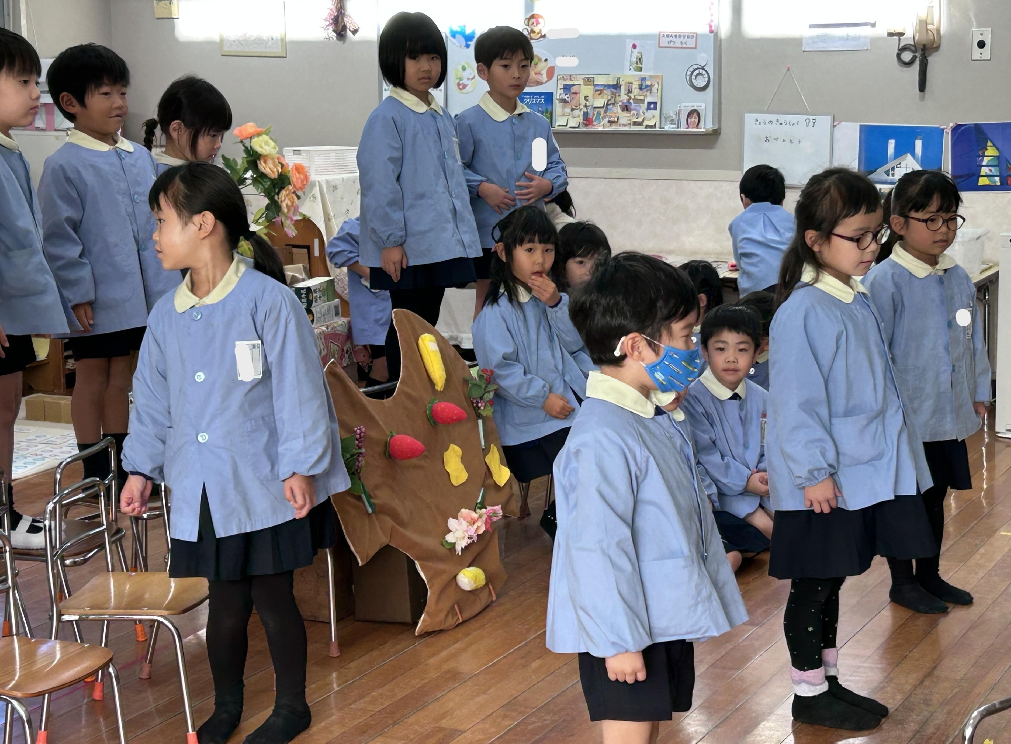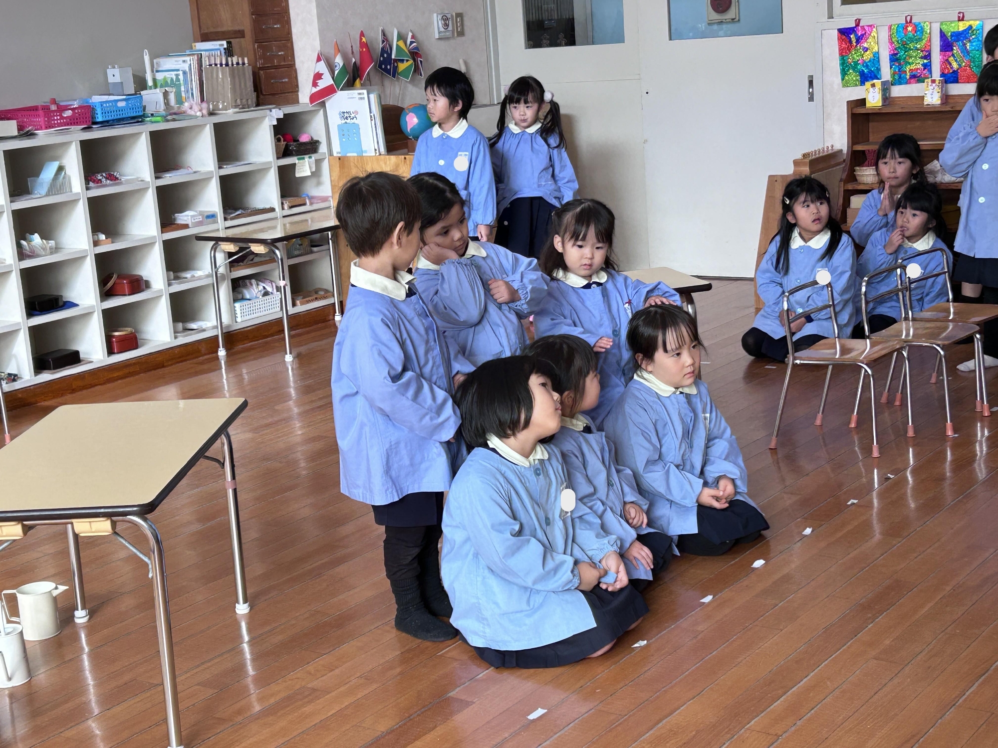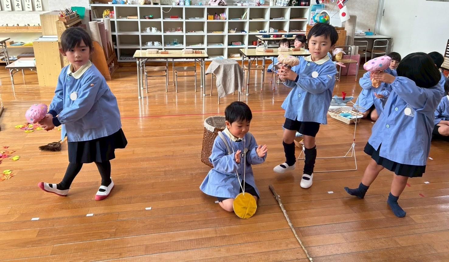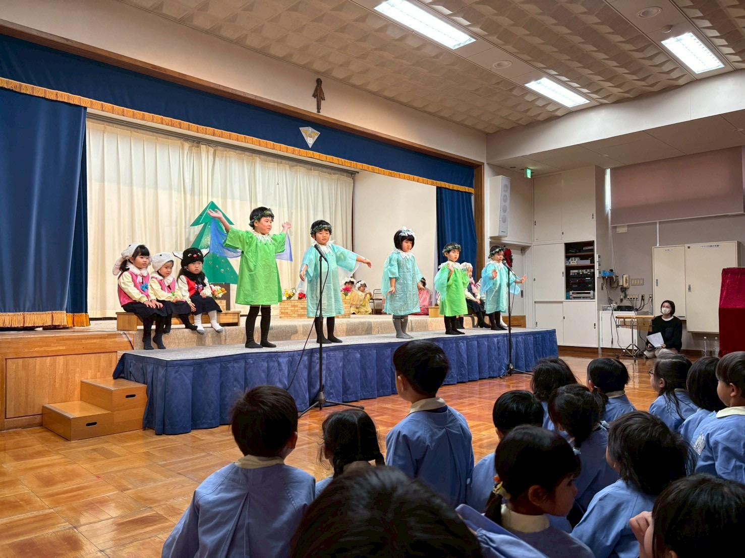 お祝い会をお休みした子ども達もいたので、ホールで劇ごっこをしました。