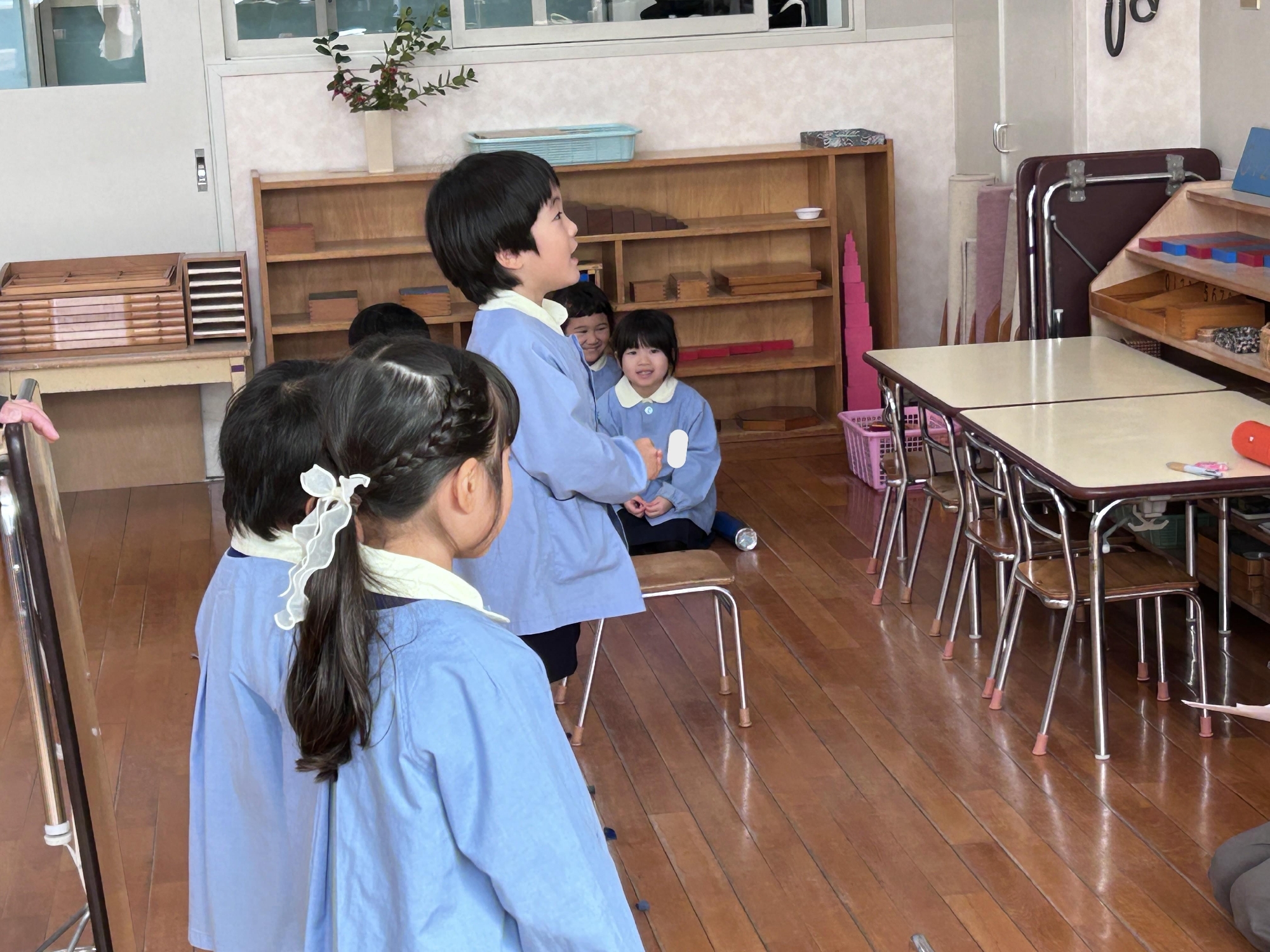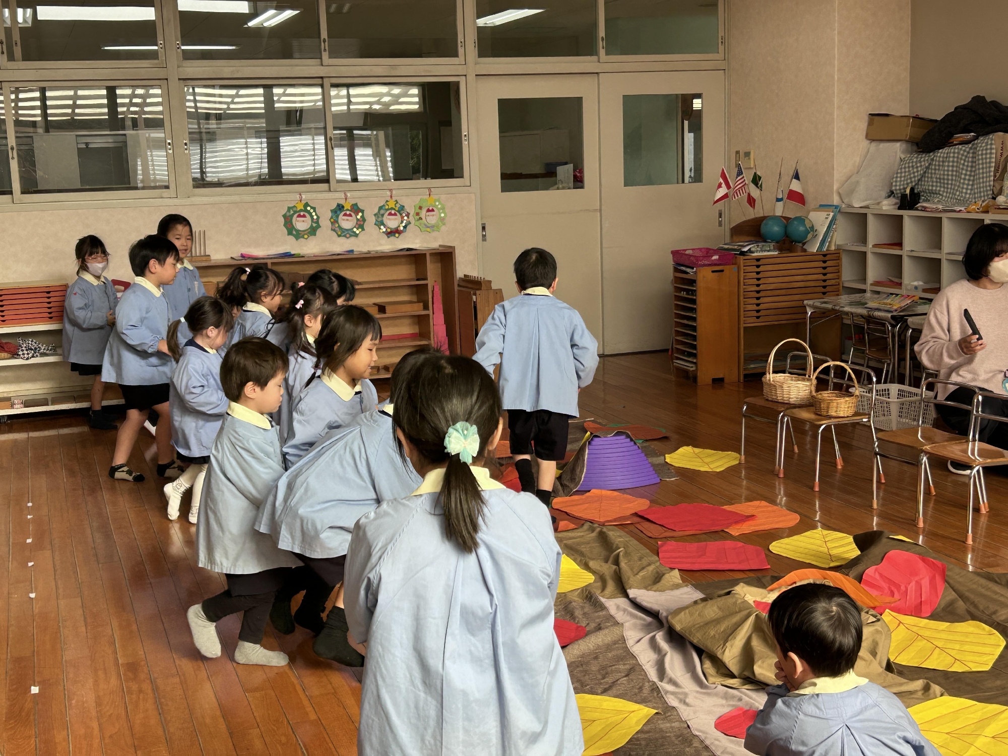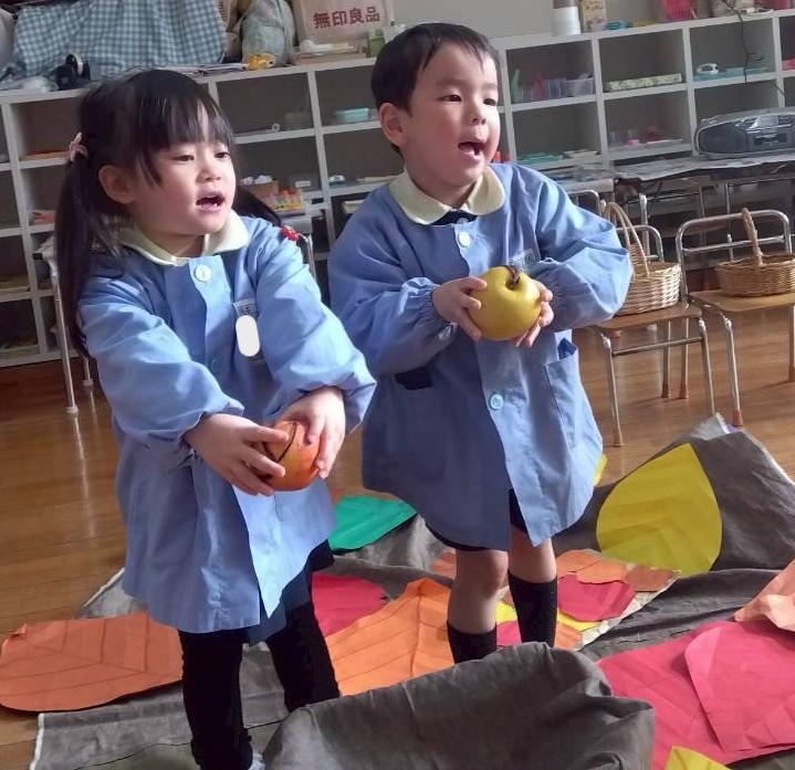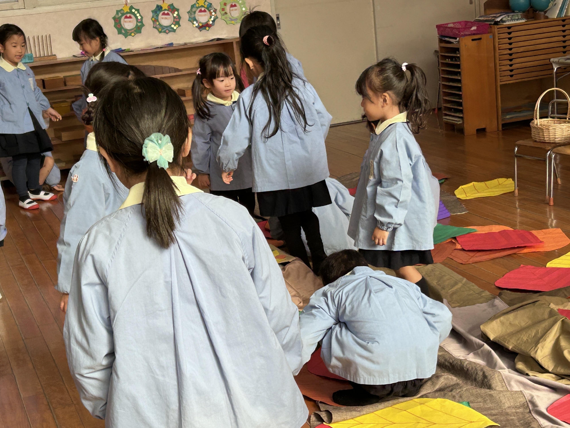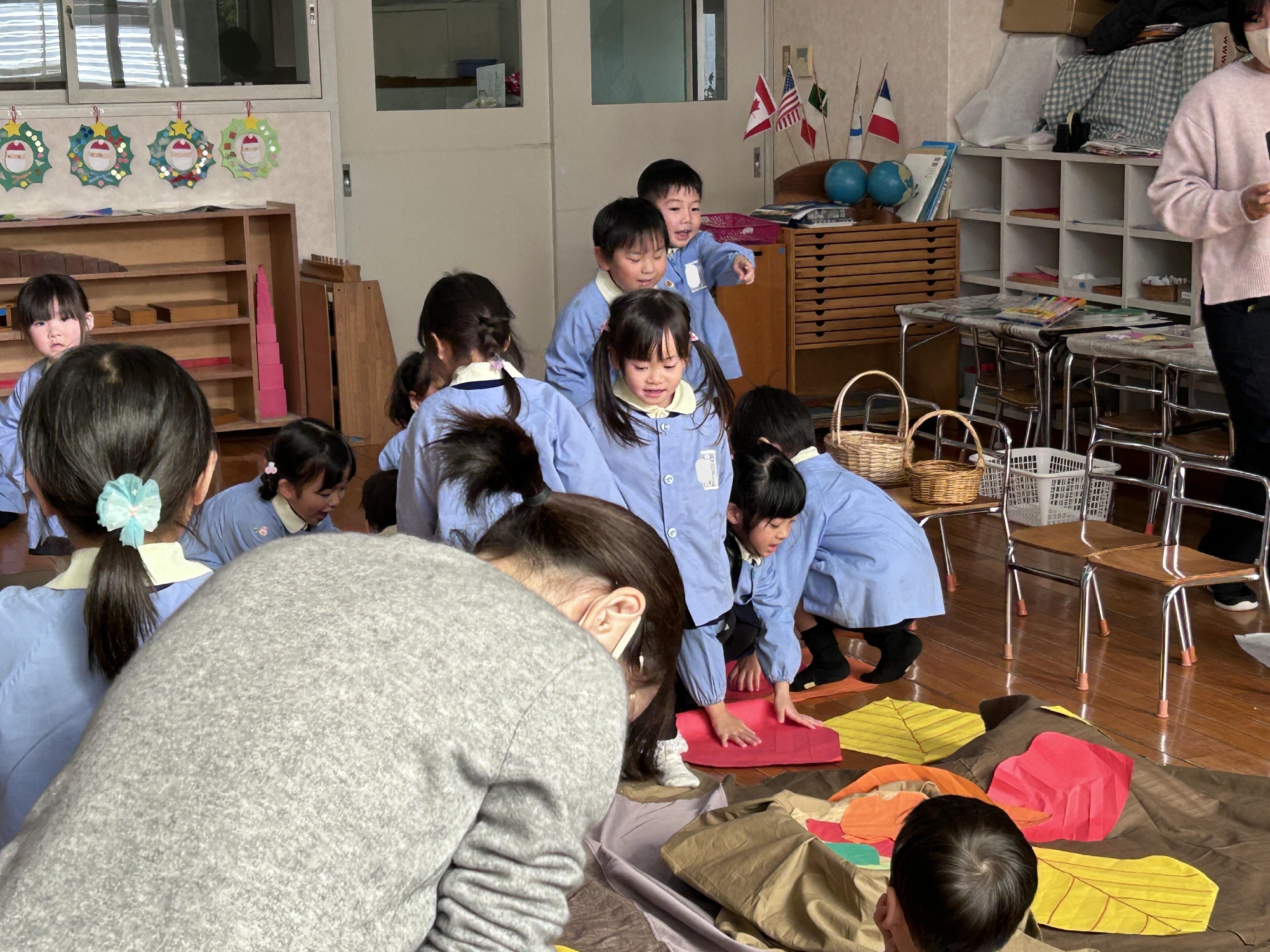 お祝い会をお休みした子ども達もいたので、ホールで劇ごっこをしました。