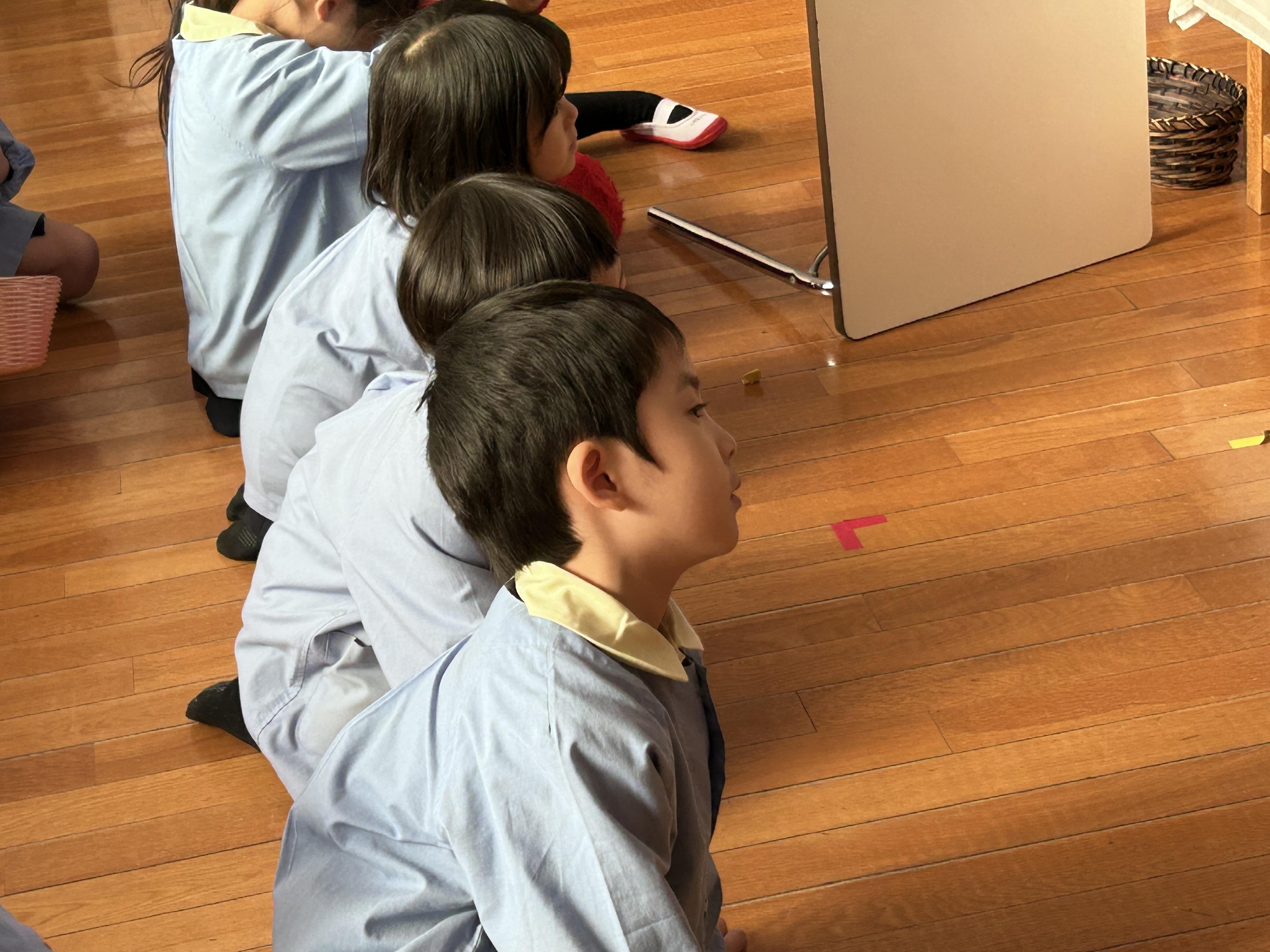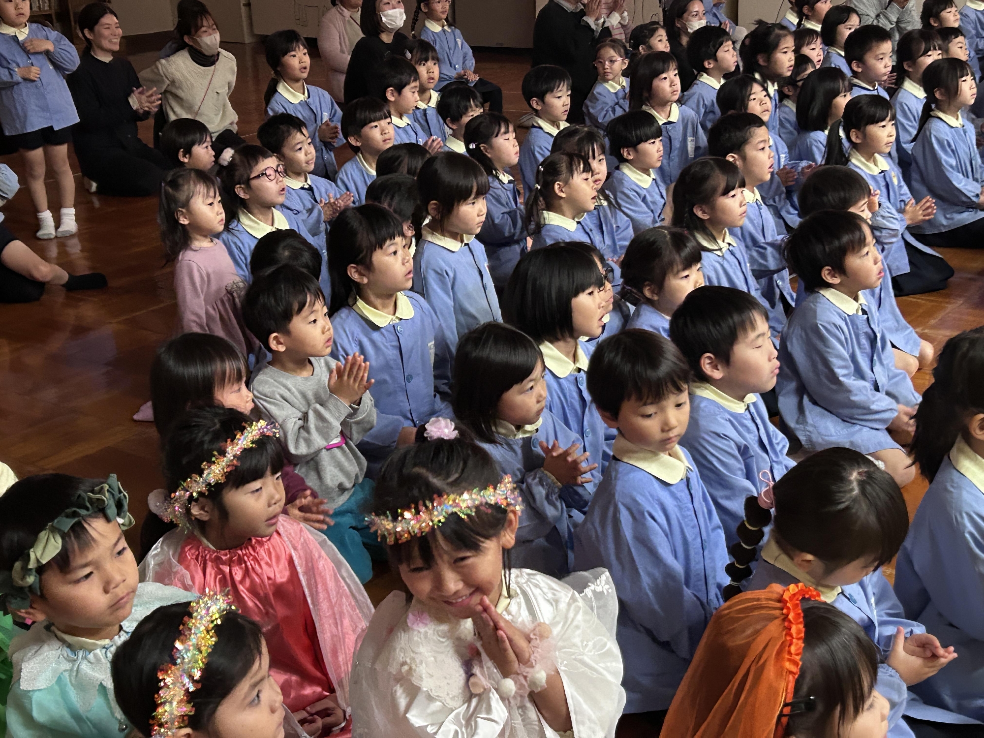 てんしぐみ(2歳児クラス)のお友だちも真剣な顔で見ながら、一緒に手拍子をしてくれていました☆
