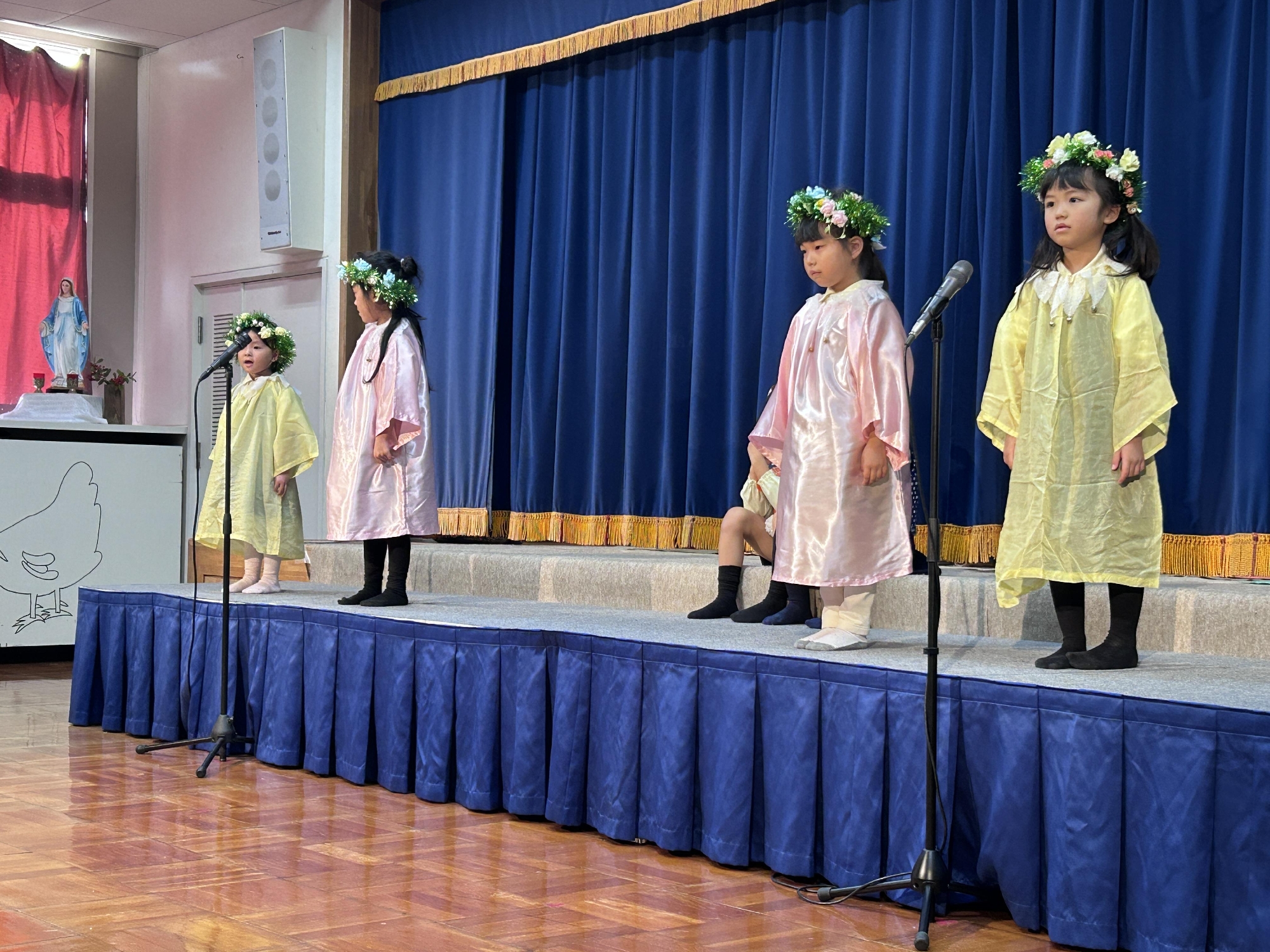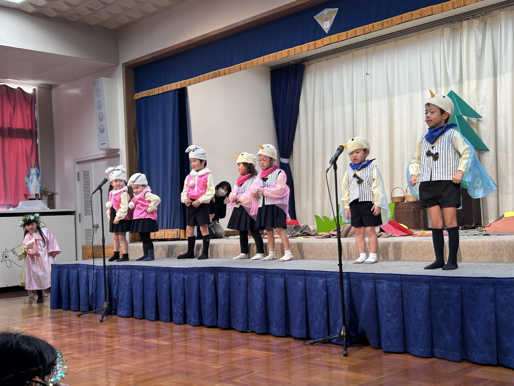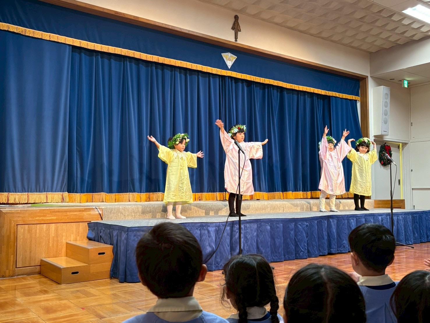 子ども達は、10月の終わりごろから、少しずつクリスマスお祝い会に向けて劇の練習をしたり、献金をしたり、アドベントカレンダーを一つずつ開けたりしながら、イエスさまのお誕生をお祝いする準備を進めてきました。