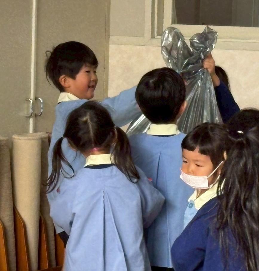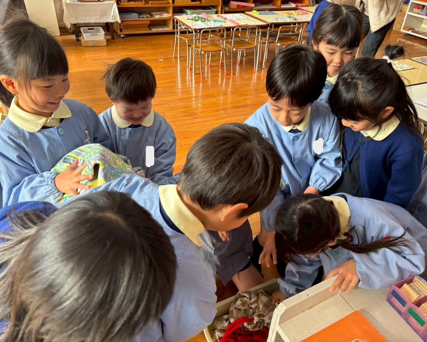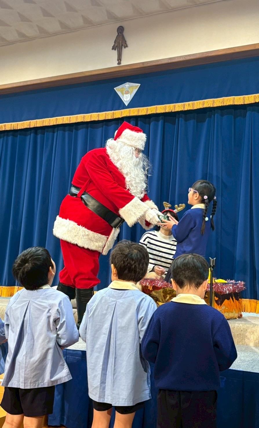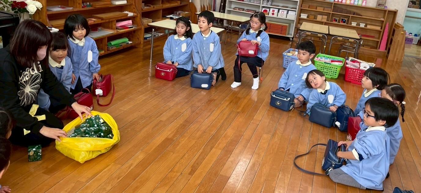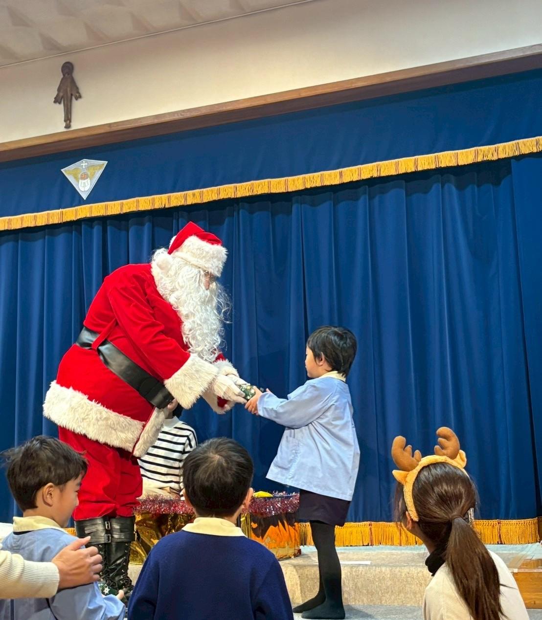 給食後、サンタさんからのプレゼントを一人ずつ貰いました。大事そうにカバンに入れて持って帰る姿も印象的でした。
