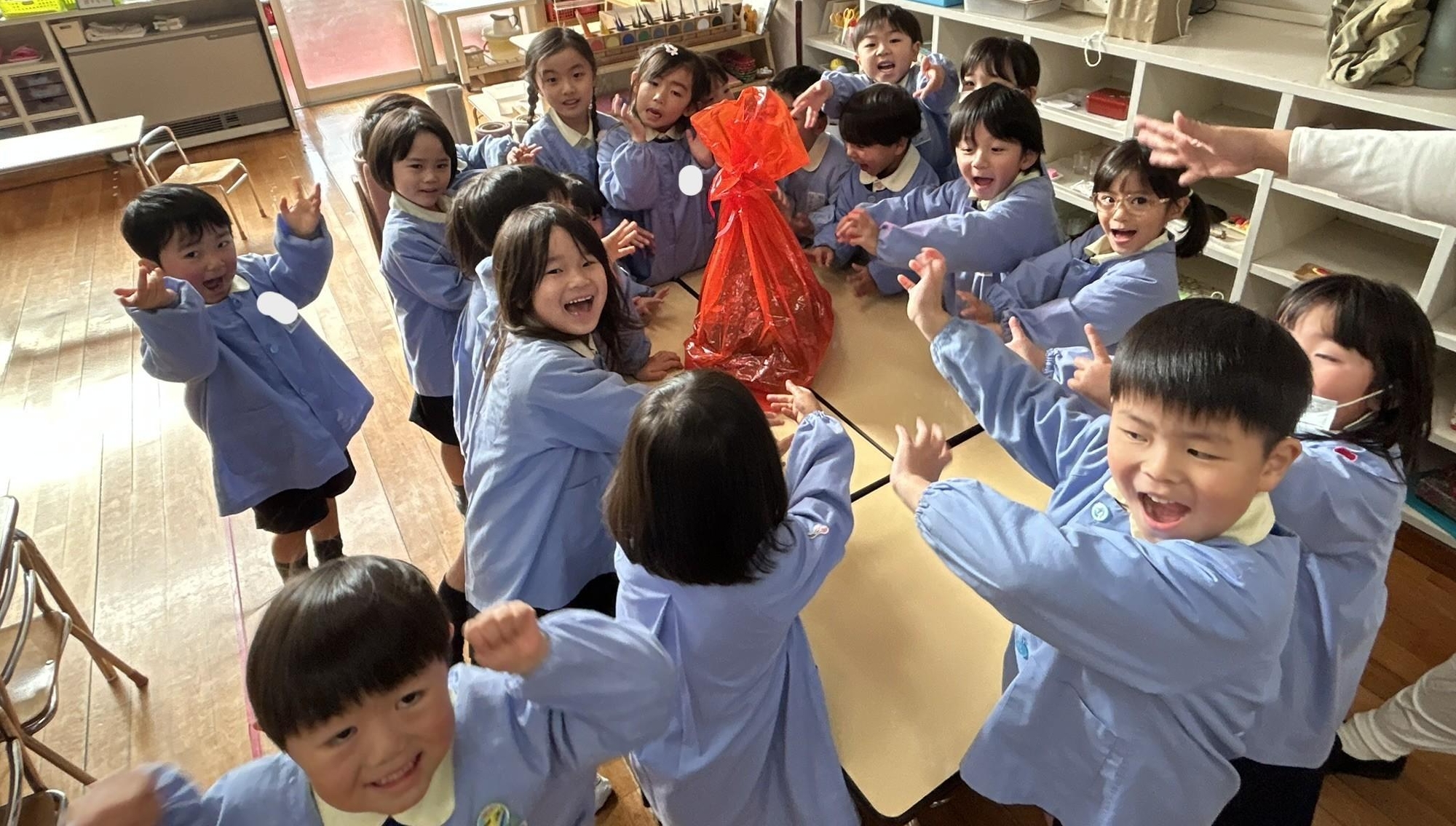 その後、サンタさんが天使幼稚園の子ども達のために、プレゼントを持ってきてくれました。
