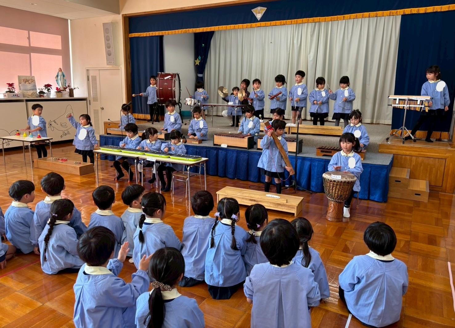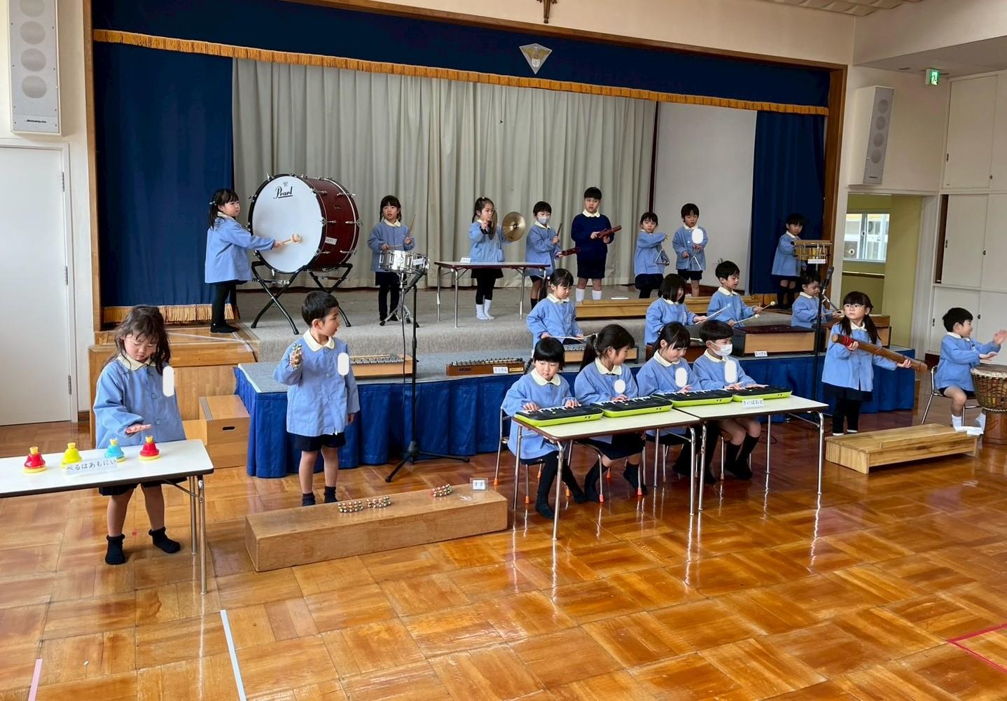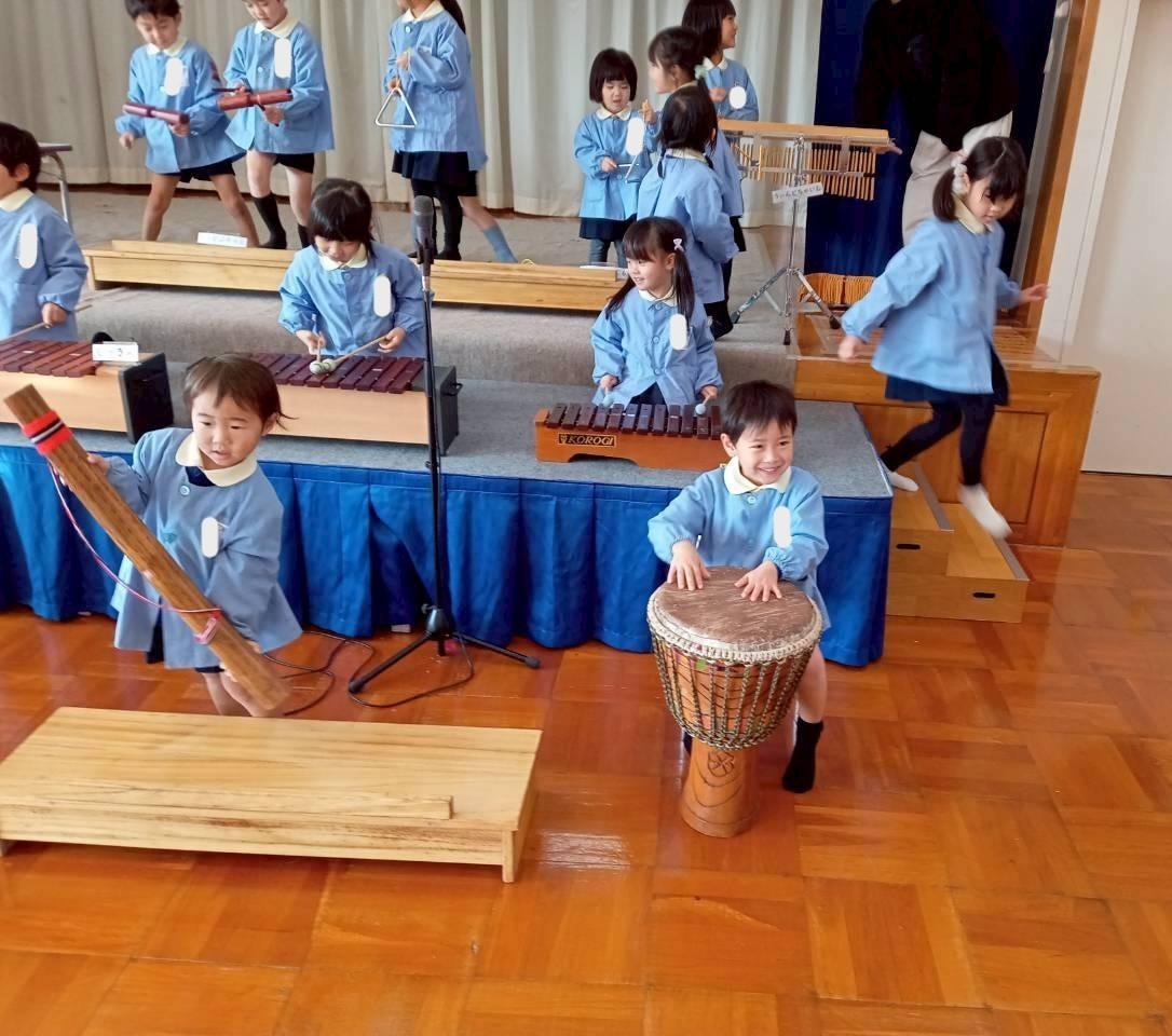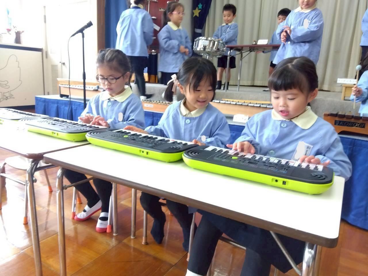 お祝い会で、年長児が「エンターテイナー」を合奏しました。