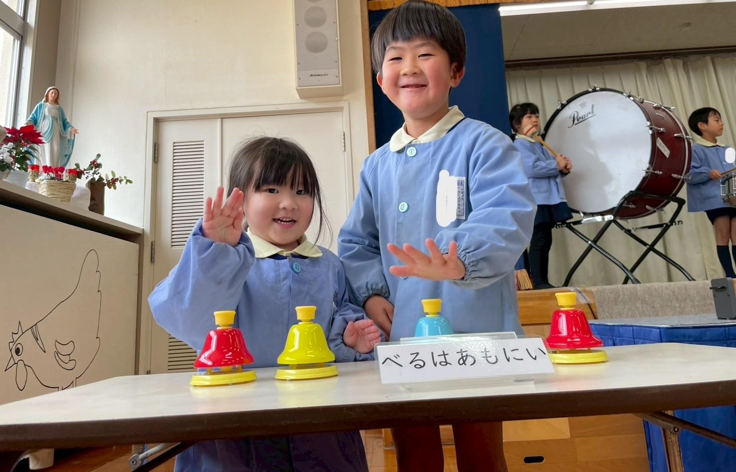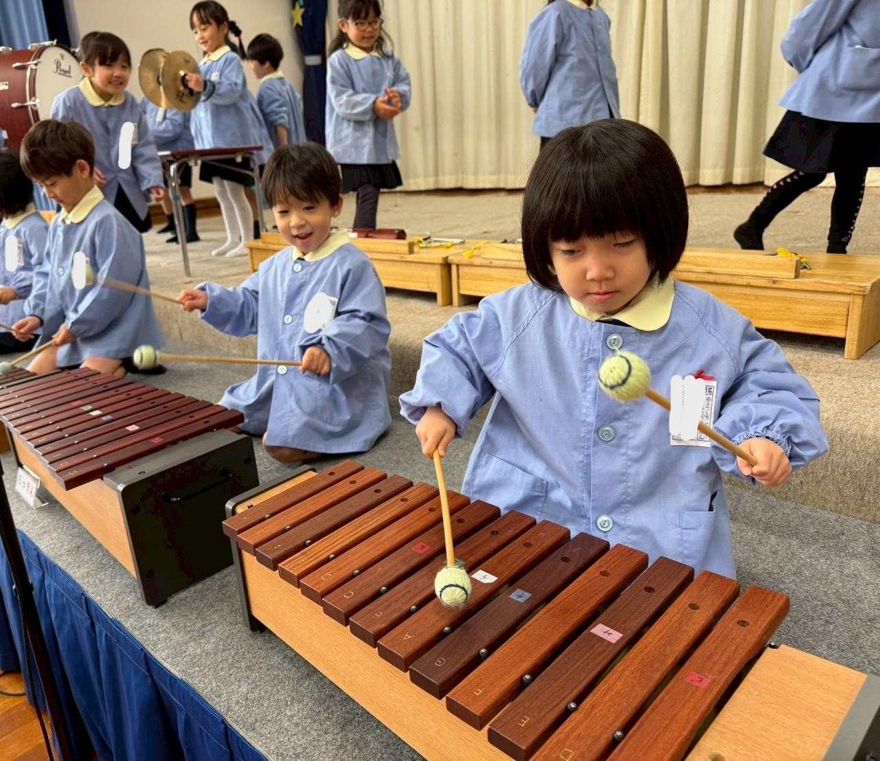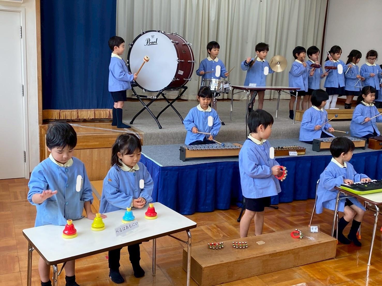 お祝い会で、年長児が「エンターテイナー」を合奏しました。