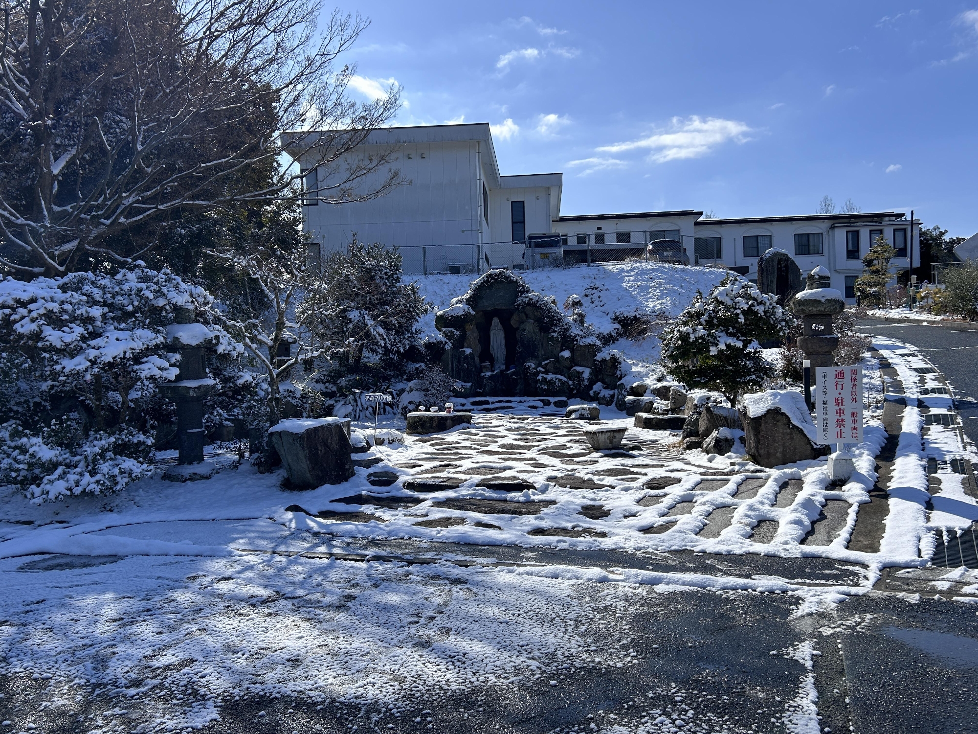 朝は寒さでその雪が凍っていました。