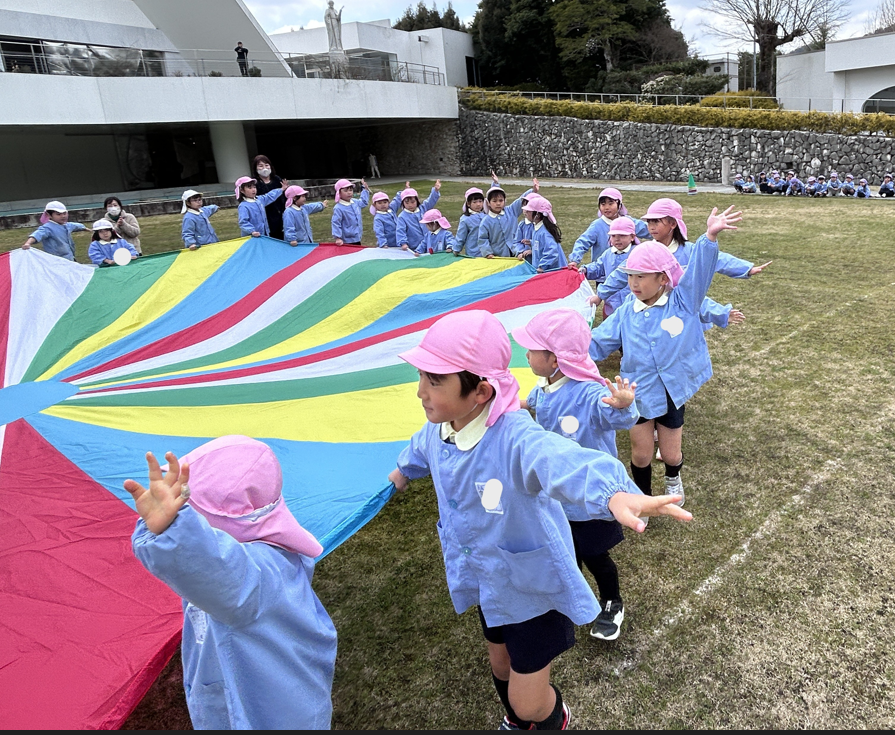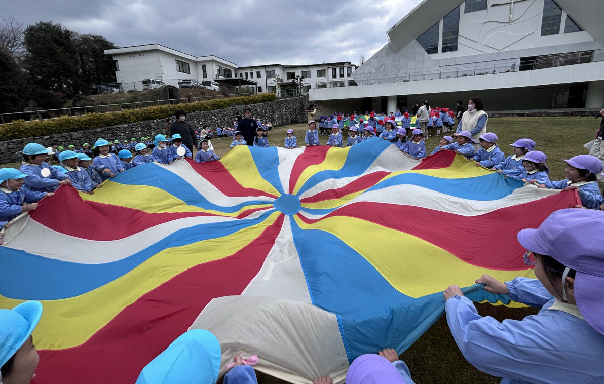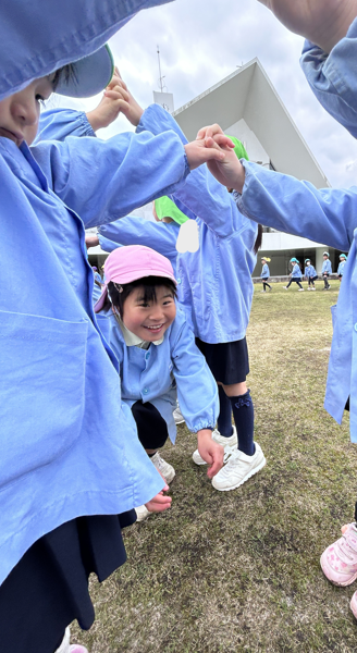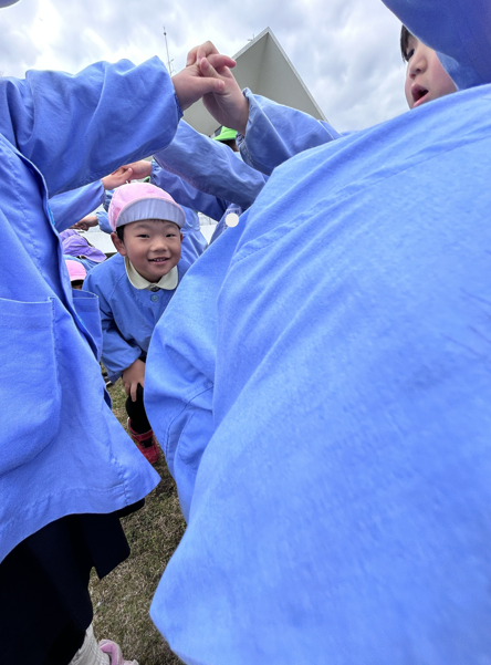小さな子ども達が一生懸命作ったトンネルを嬉しそうに年長児が駆け抜けていきました。