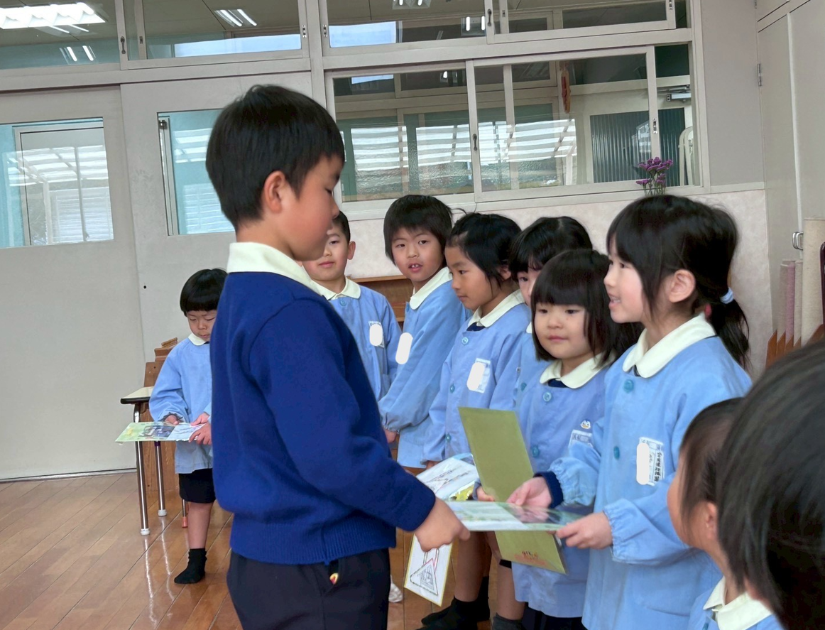 食後に、年長児へサプライズプレゼント。