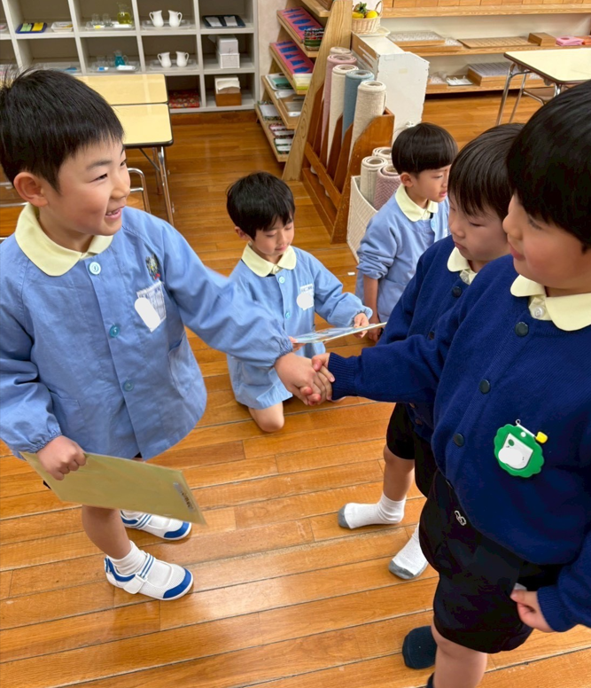 みんなの大好き♡が詰まった心のこもったプレゼント。「今までありがとう」「○○君大好きだよ」と考えた言葉を添えて渡しました。「○○ちゃんが大好きって言ってくれて嬉しかった」「Aさん嬉しそう~!!」「嬉しいって言ってくれて嬉しかった~!!」