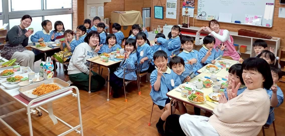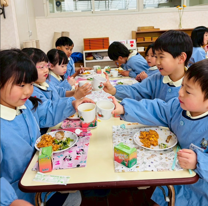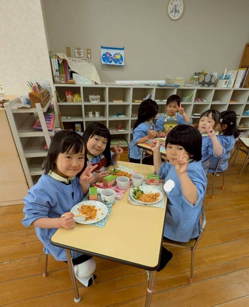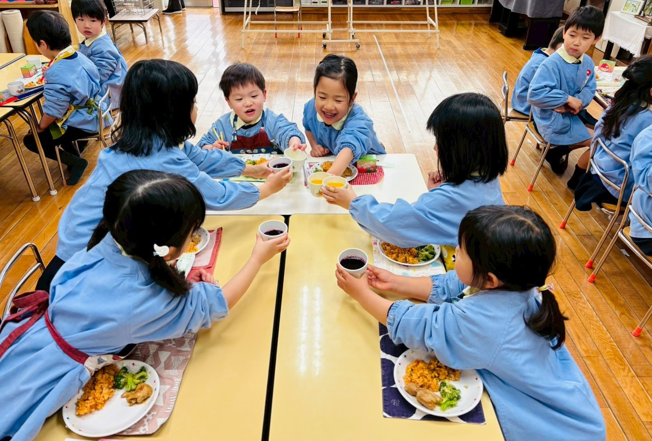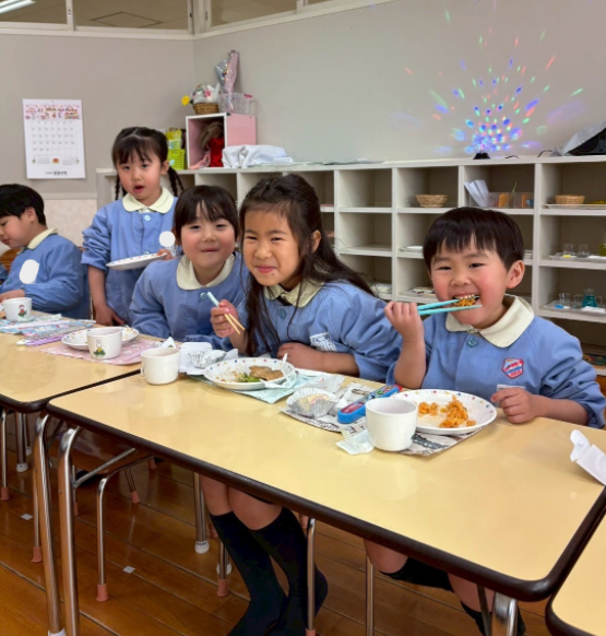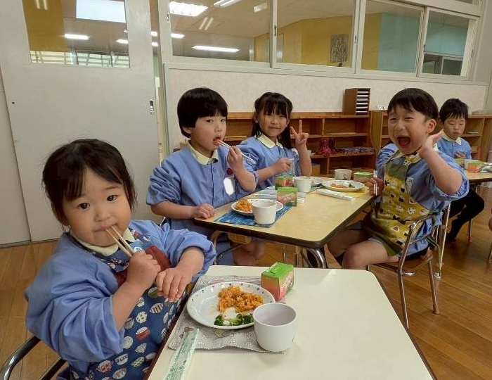 幼稚園に帰ってみんなで給食を食べました。