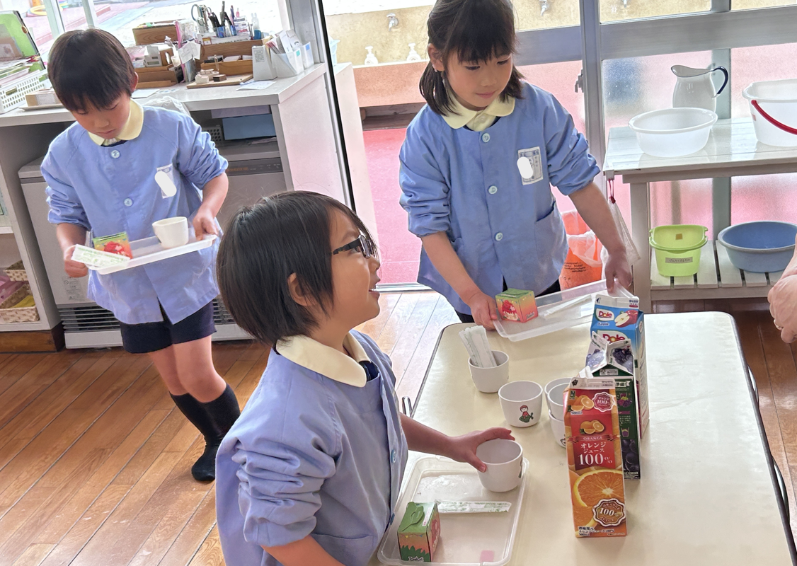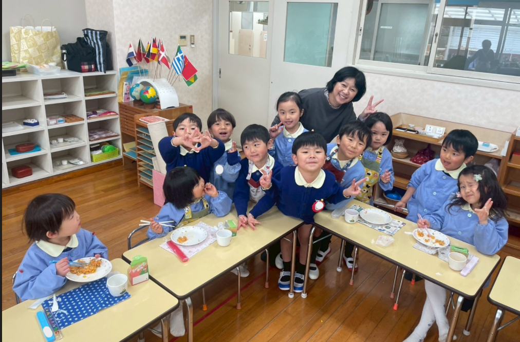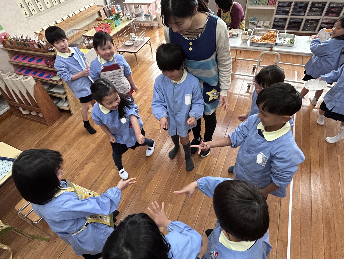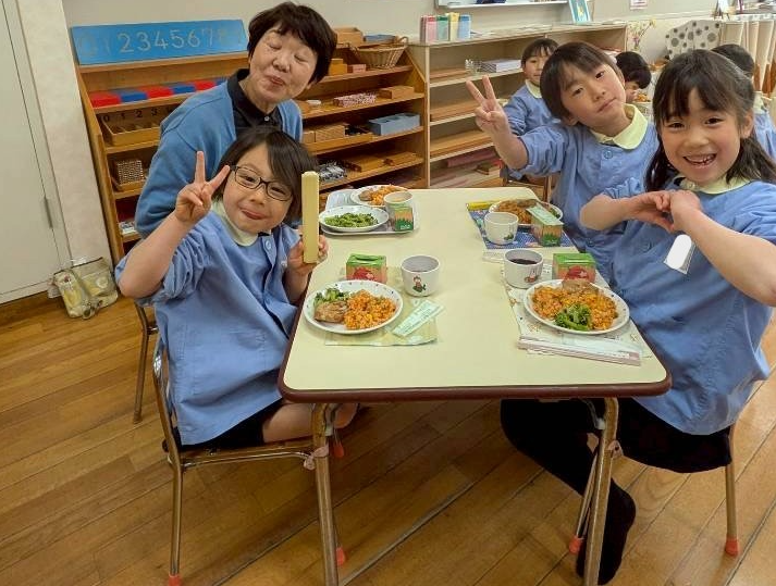 幼稚園に帰ってみんなで給食を食べました。