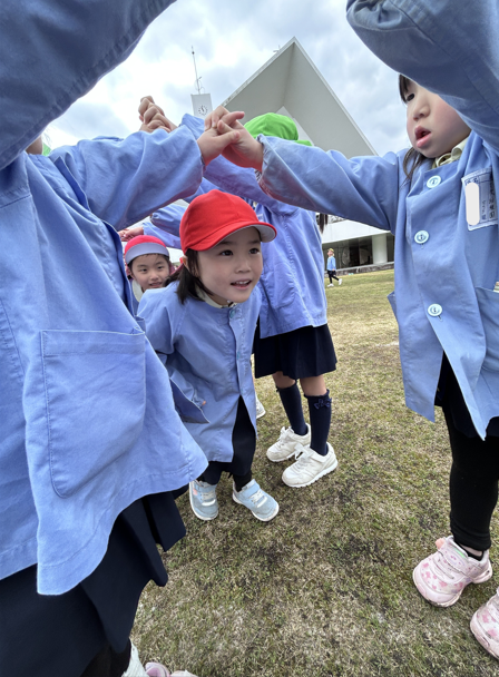 小さな子ども達が一生懸命作ったトンネルを嬉しそうに年長児が駆け抜けていきました。