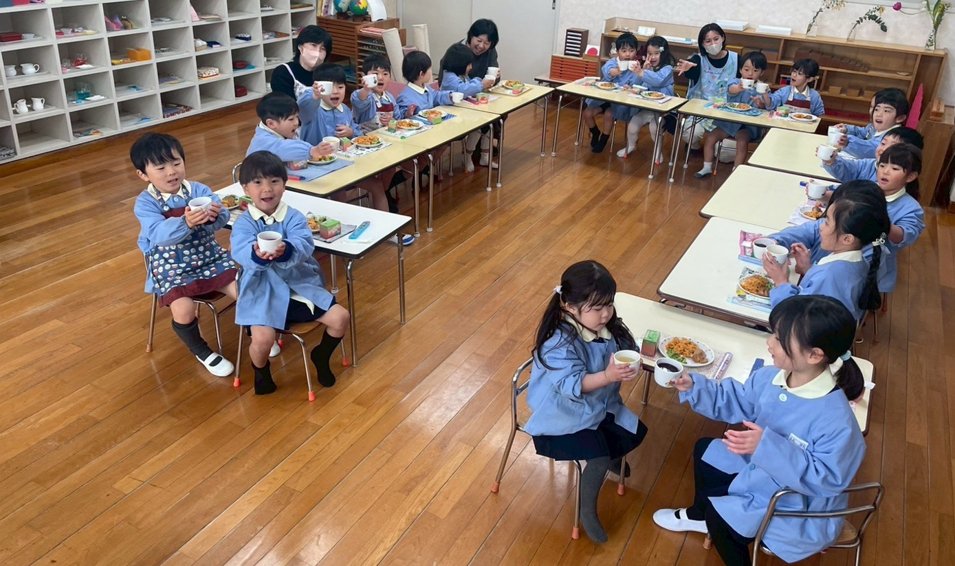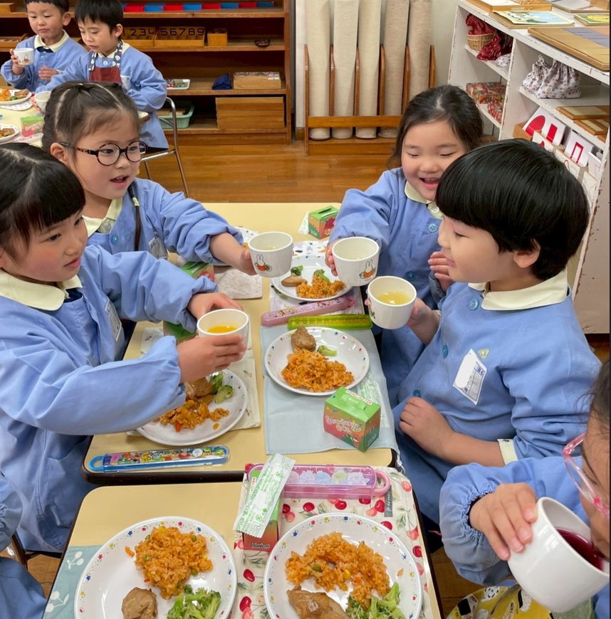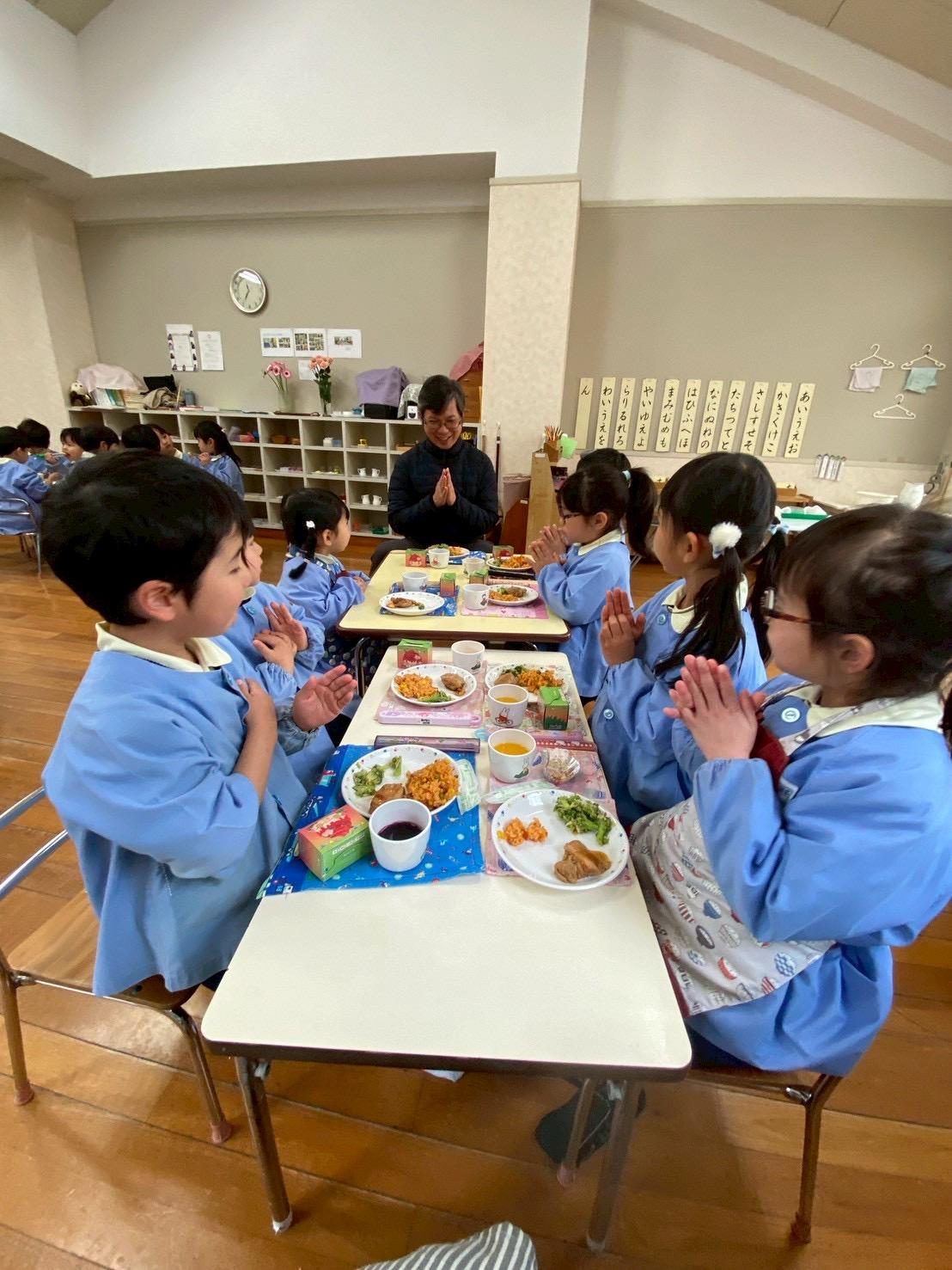 幼稚園に帰ってみんなで給食を食べました。