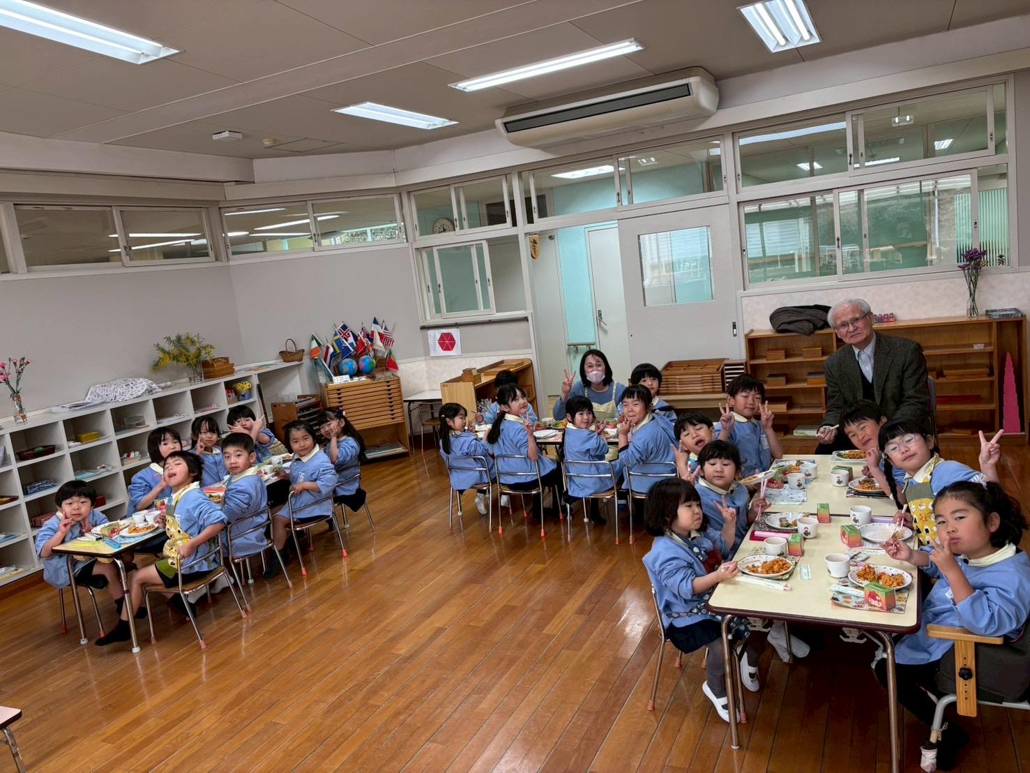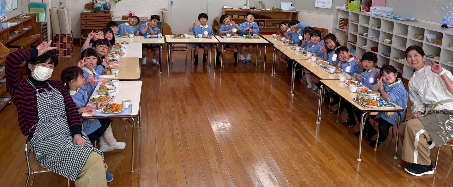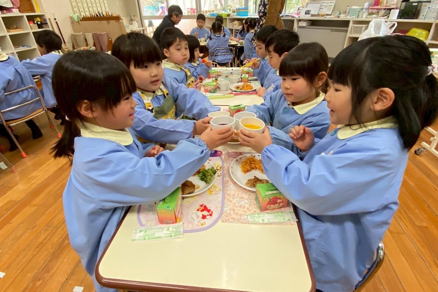 幼稚園に帰ってみんなで給食を食べました。