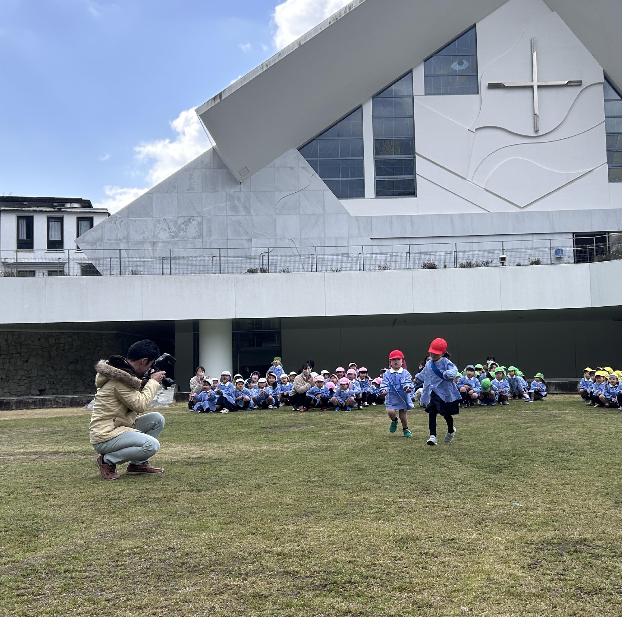 縄を持つ子ども達が、跳ぶ子ども達の様子をよ~く見て、進んでいく姿を見て、本当にみんなの息がぴったり合っているなあ…お友だちのことをよく考えてあげているなあと感心しました。