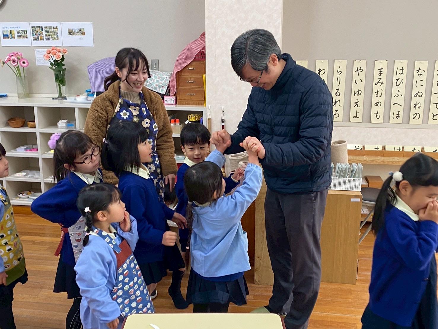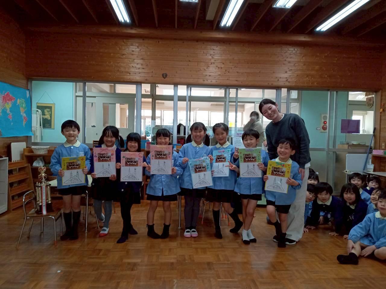 食後に、年長児へサプライズプレゼント。