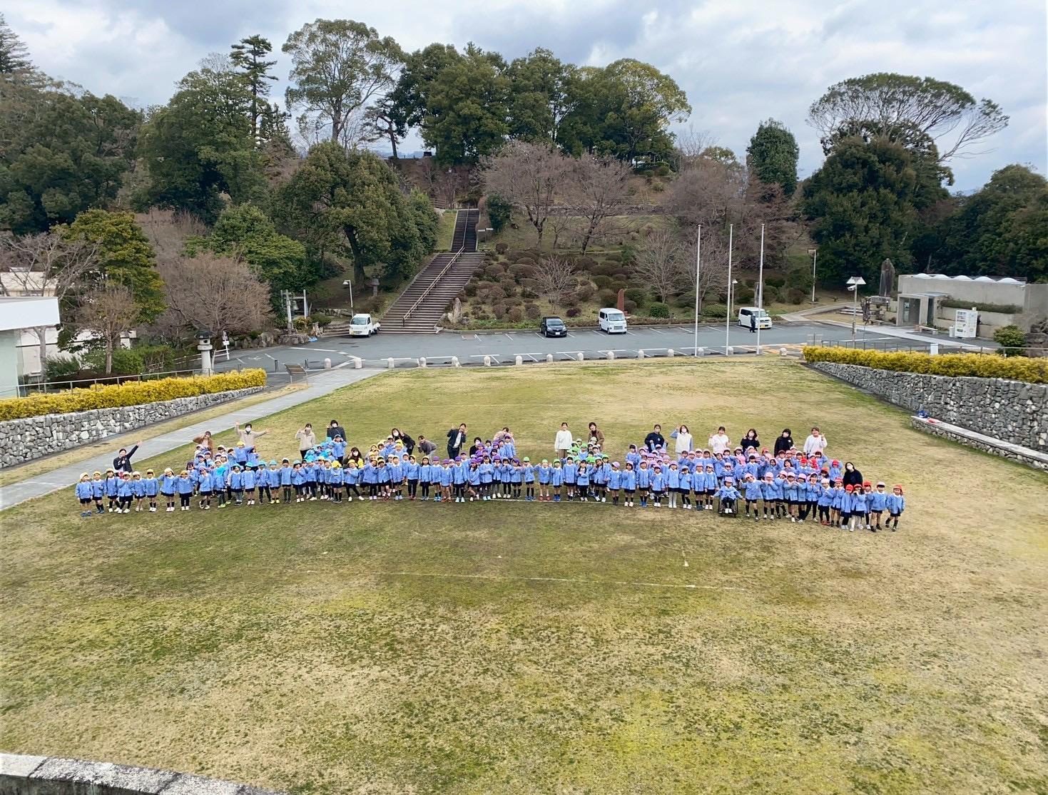 年長児が前に並び、みんなでメッセージを届けました。