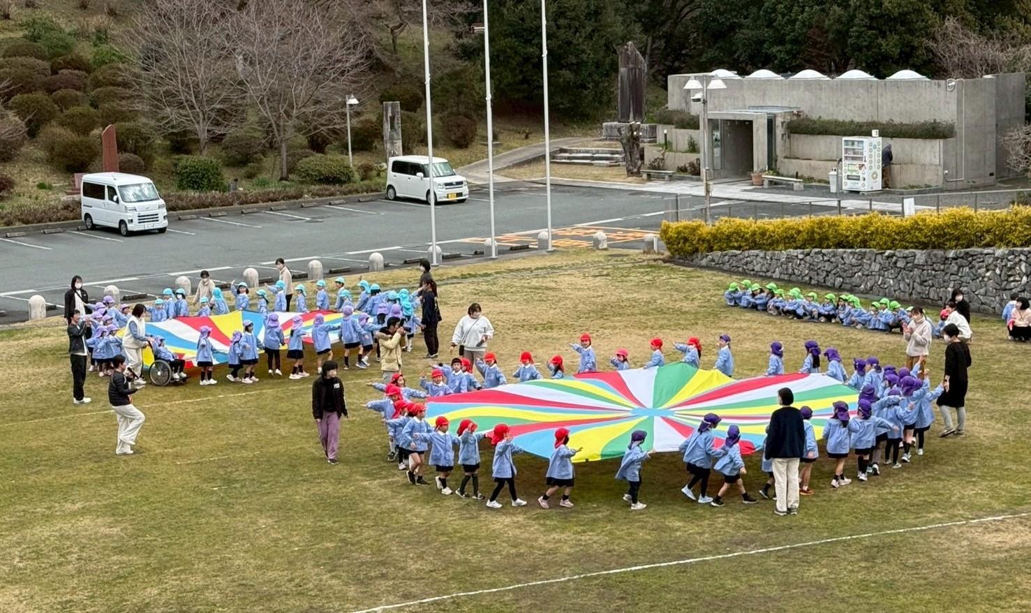 波を作ったり、回ったり、大きな丸いドームを作ったり…。「わあ~!!」と歓声が上がりました。